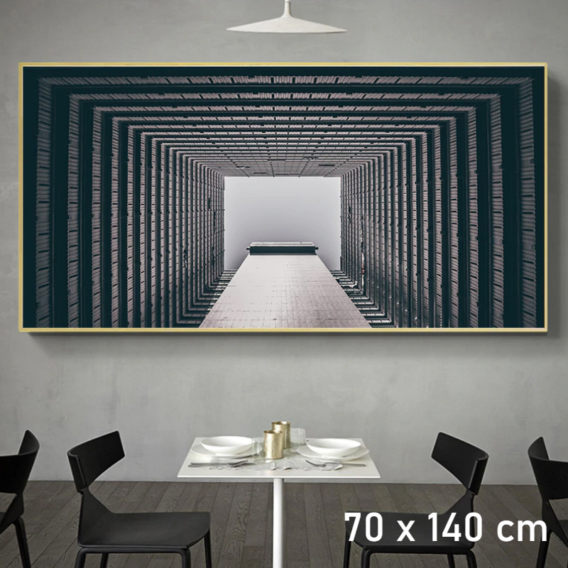 Canvas Schilderij * Moderne Industriële Stijl Geometrie * - Industrieel Retro - Zwart wit - 70 x 140 cm