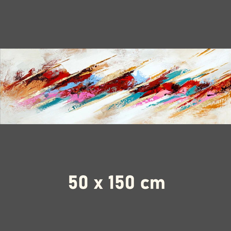 Met een hoogte van 50 cm en een breedte van 150 cm is het schilderij langwerpig van vorm.