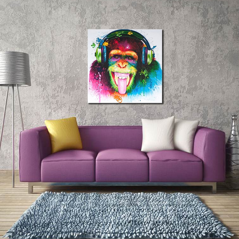 Allernieuwste.nl® Canvas Schilderij Muzikale Graffiti Aap - Kunst aan je Muur - PopArt Modern Graffiti - Kleur - 50 x 50 cm