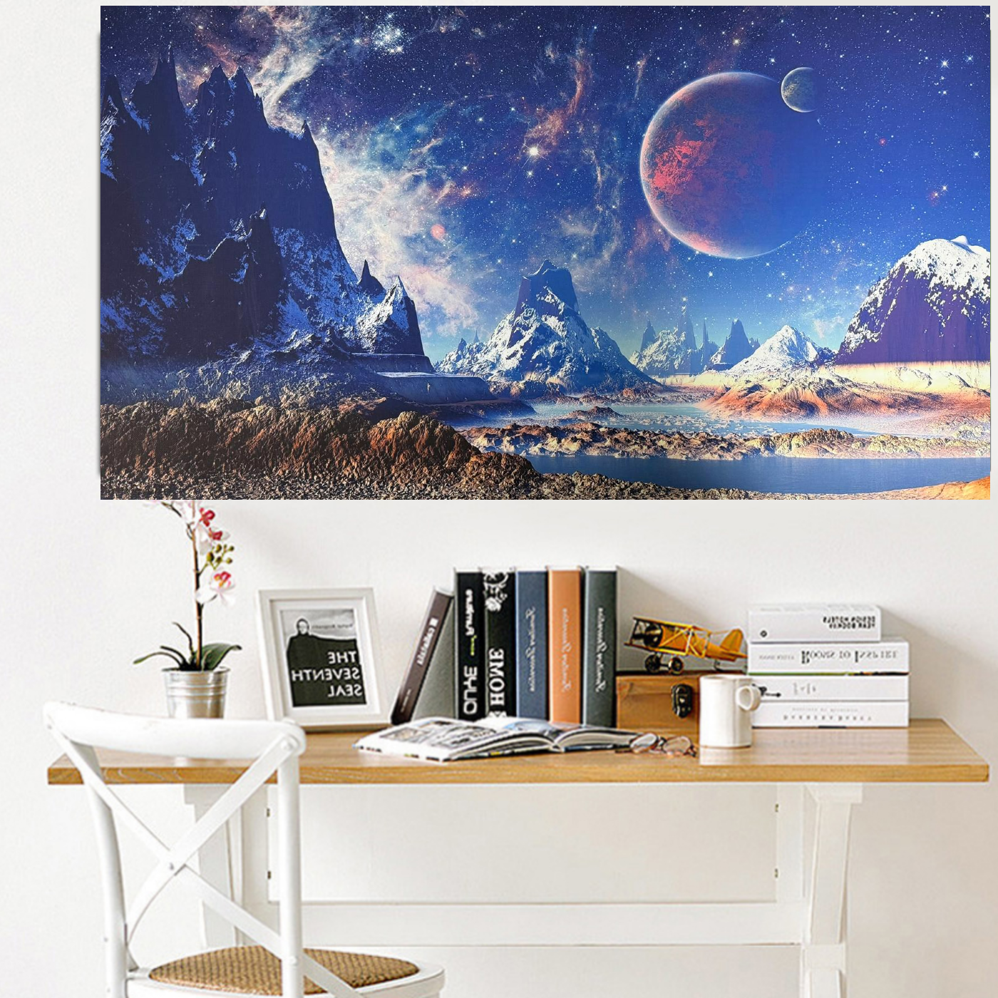 Met een formaat van 50 x 90 cm heeft dit schilderij een elegant langwerpig formaat. Hierdoor komt deze canvas muurdecoratie woonkamer bijzonder goed tot zijn recht op een grotere muur. Hang het schilderij bijvoorbeeld boven een bank, bed of dressoir om een rustgevende en stijlvolle sfeer te creëren.