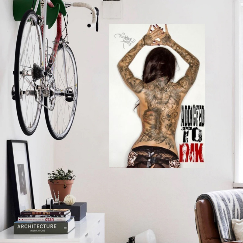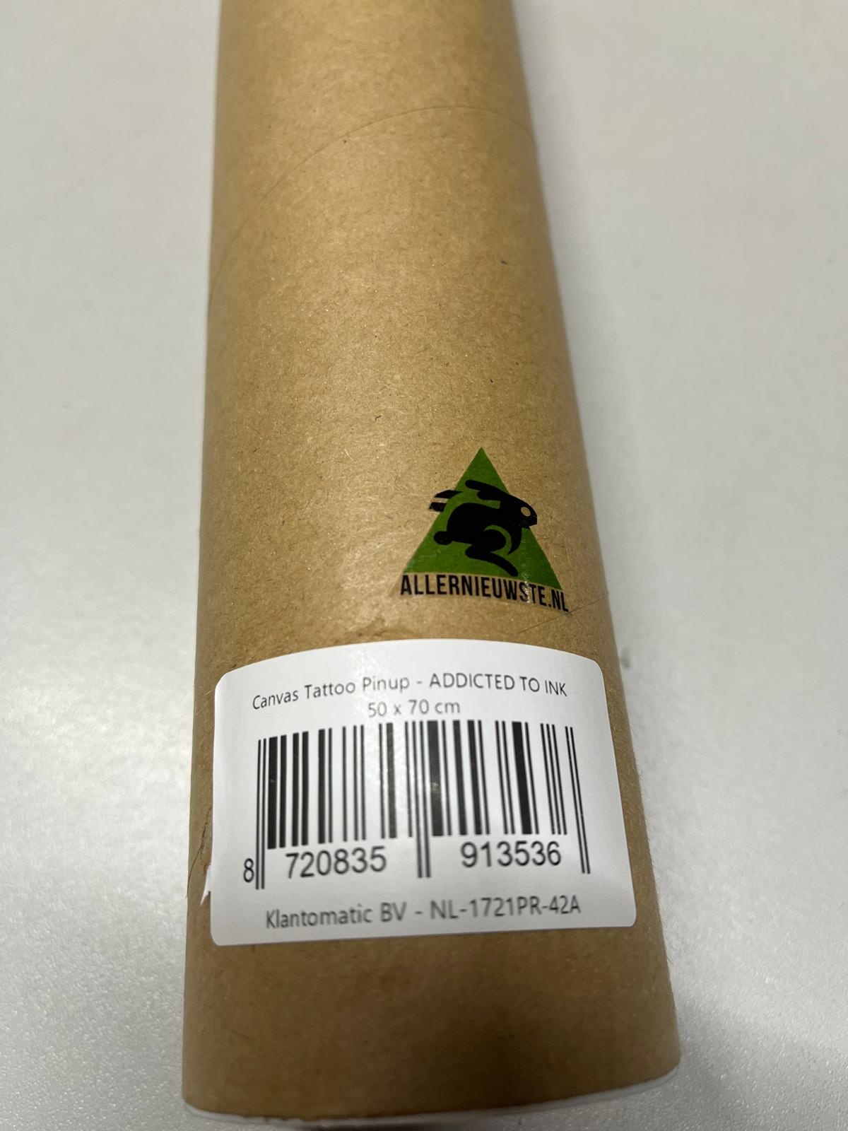 Allernieuwste.nl® Canvas Schilderij Tattoo Pinup - ADDICTED TO INK - Kunst aan je Muur - Kleur - 50 x 70 cm