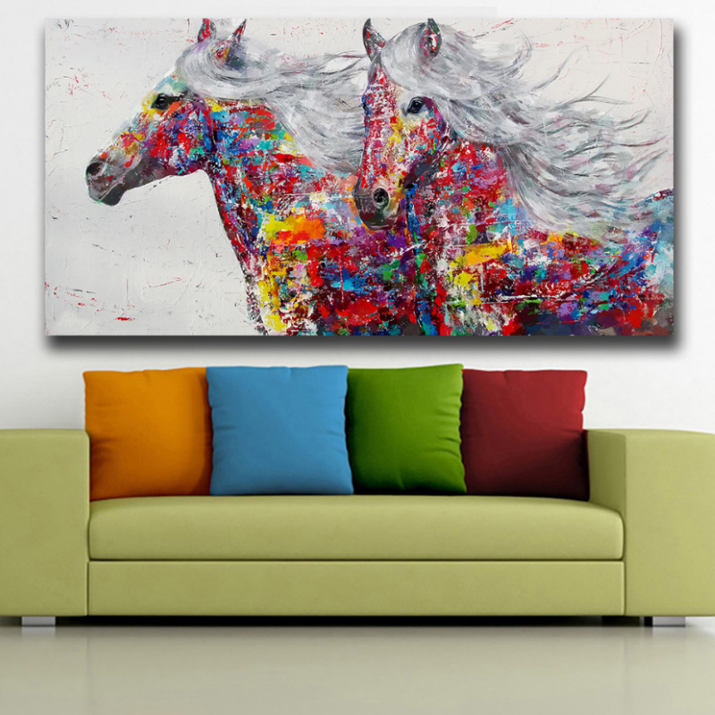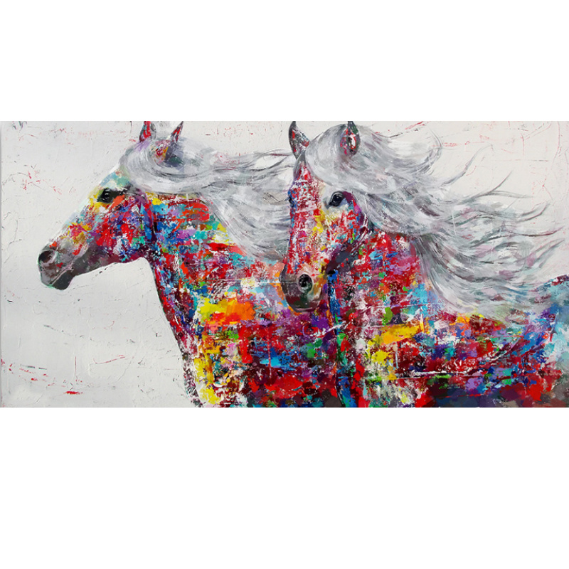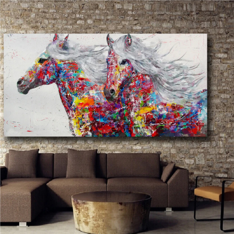 Allernieuwste.nl® Canvas Schilderij Twee Graffiti Paarden - Kunst aan je Muur - Graffiti - Kleur - 70 x 140 cm