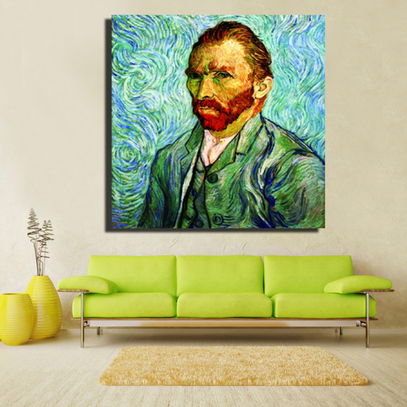 Canvas Schilderij * Vincent van Gogh - Zelfportret 1889 * - Kunst aan je Muur - Meesterwerk - kleur - 60 x 60 cm