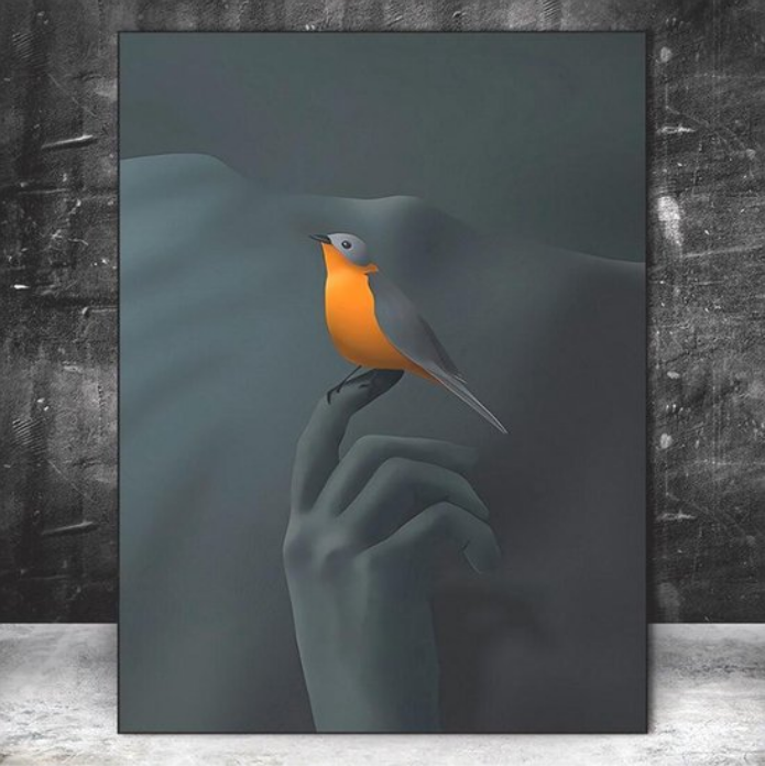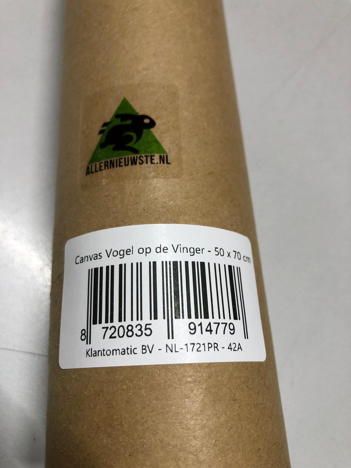 Allernieuwste.nl® Canvas Schilderij * Vogel op de Vinger * - Kunst aan je Muur - Modern Realistisch - Kleur - 50 x 70 cm