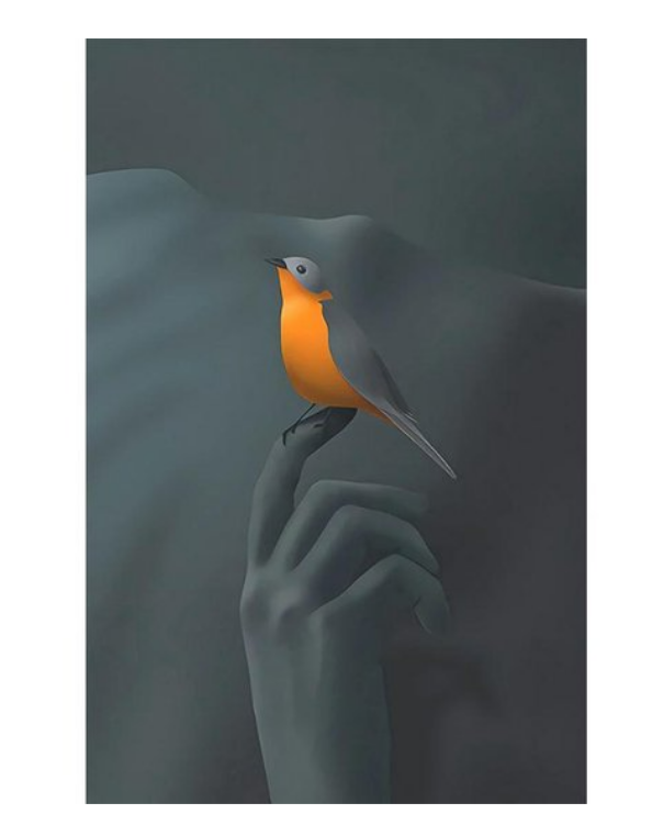 roodborstje - vingertoppen - hand