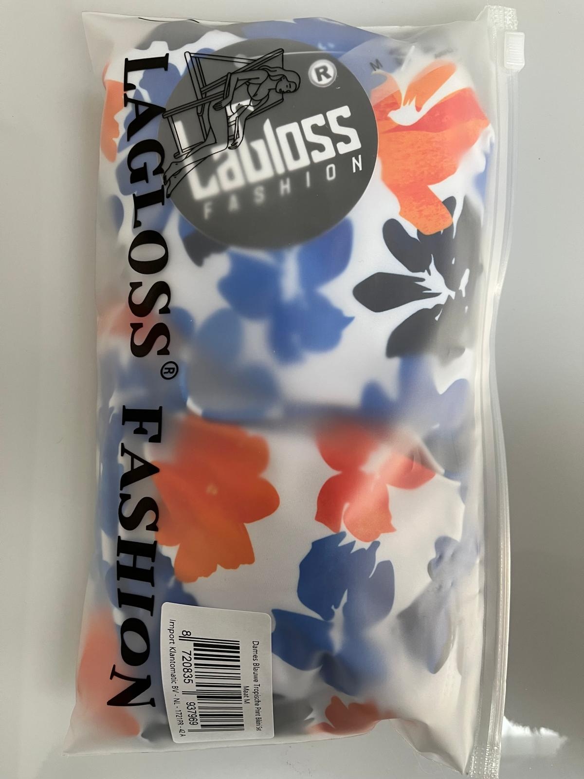 LaGloss® Dames Blauwe Tropische Print Bikini Set Met Haltertop en Omkeerbaar Broekje – Zomer mode – Beach fashion – Maat S