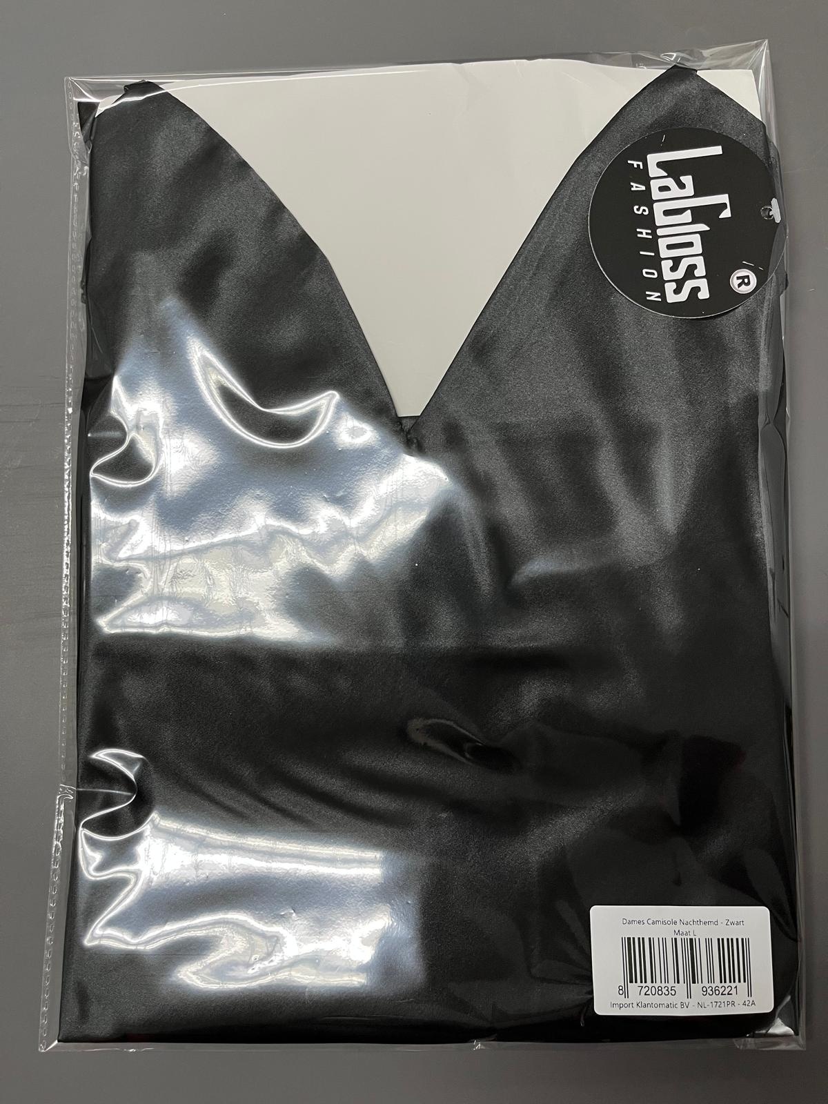 LaGloss® Dames Camisole Nachthemd - Zwart – V-hals – Alle Seizoenen – Slaapjurk - Nachtjurk - Maat L