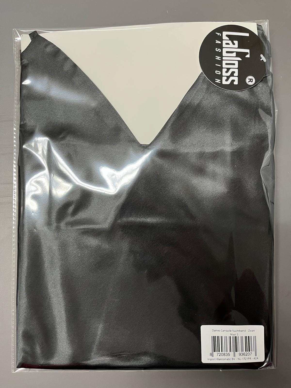 LaGloss® Dames Camisole Nachthemd - Zwart – V-hals – Alle Seizoenen – Slaapjurk - Nachtjurk - Maat S