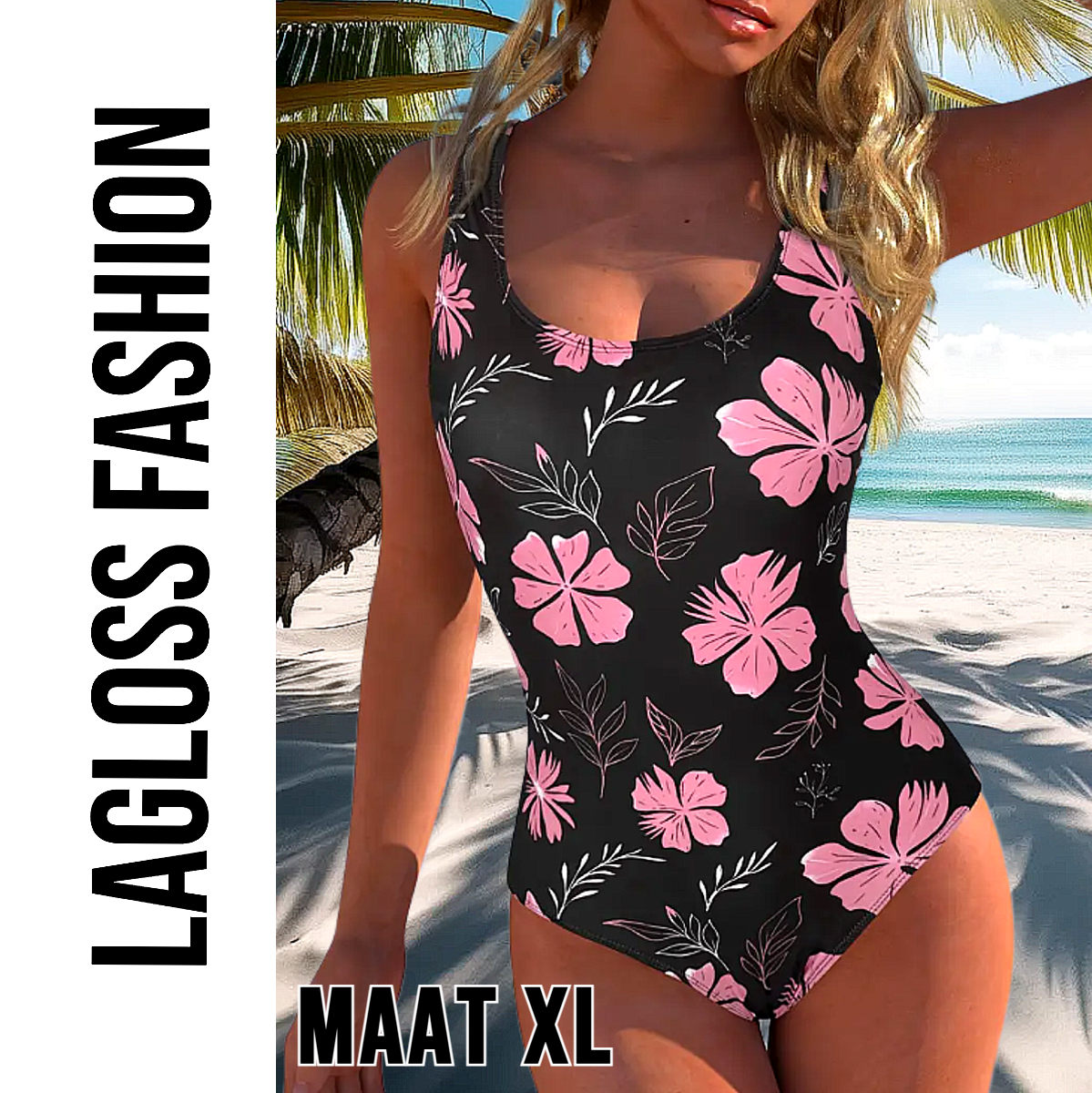 LaGloss® Dames Eendelig Badpak met Elegante Roze Klavertjevier – Rugloos Zeemeermin Model – Ronde Hals – Zwemkleding voor Strand, Zwembad & Vakantie – Maat XL
