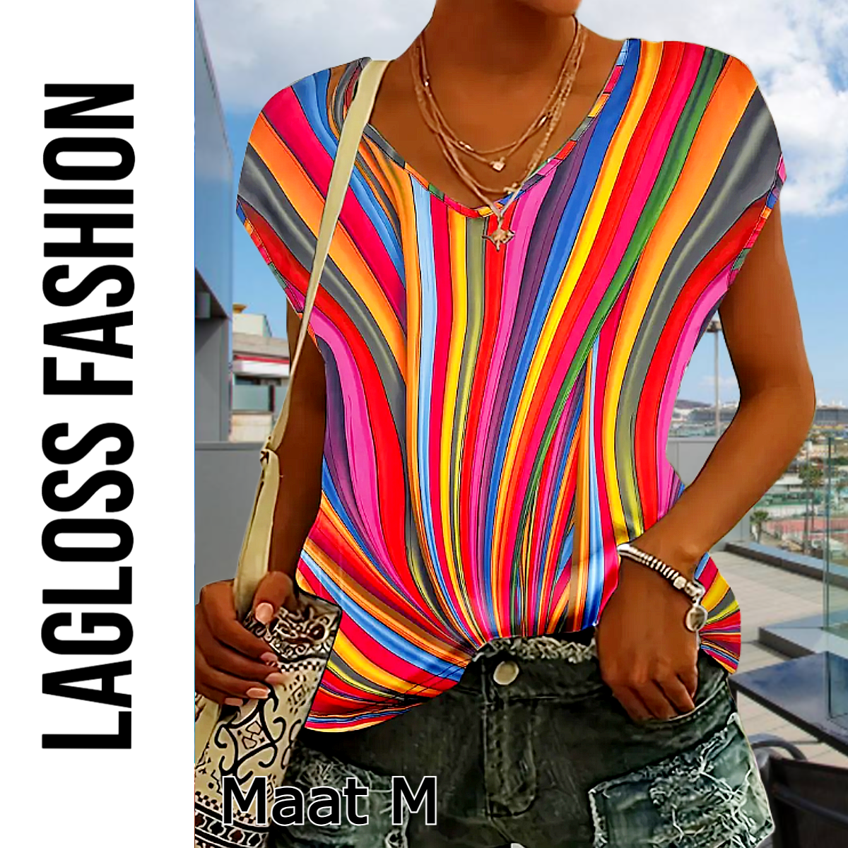 Deze dames western streep tanktop is de perfecte mix van casual comfort en trendy design. Met een V-hals, korte mouwen en kleurrijke tie-dye print is dit shirt ideaal voor een relaxte, stijlvolle look.
