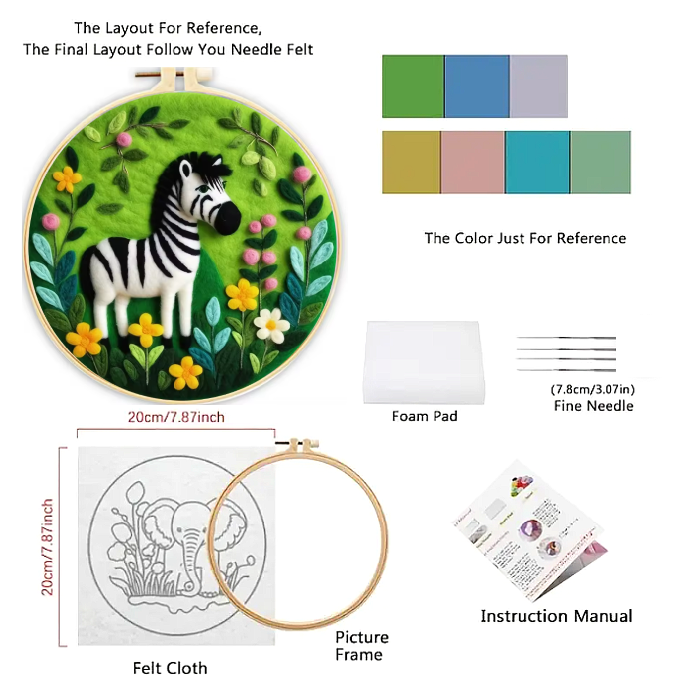 DIY Naaldvilt Wolvilt Pakket – Complete Starterset Zebra – Met Wol, Naalden, Borduurring & Handleiding – Creatief Hobbypakket voor Beginners & Gevorderden
