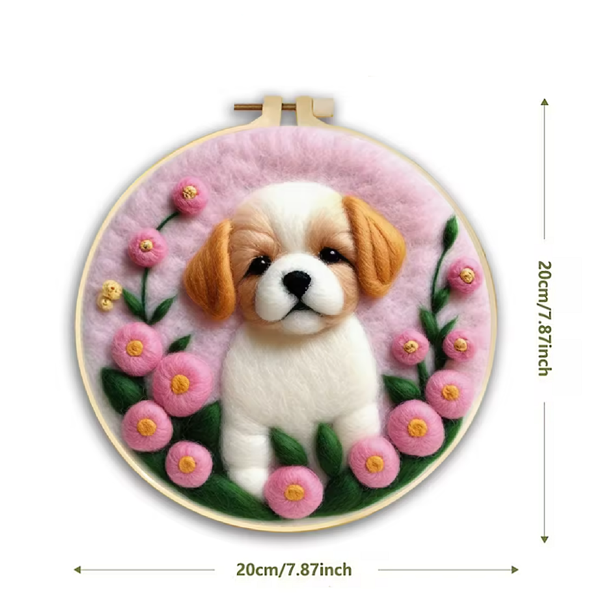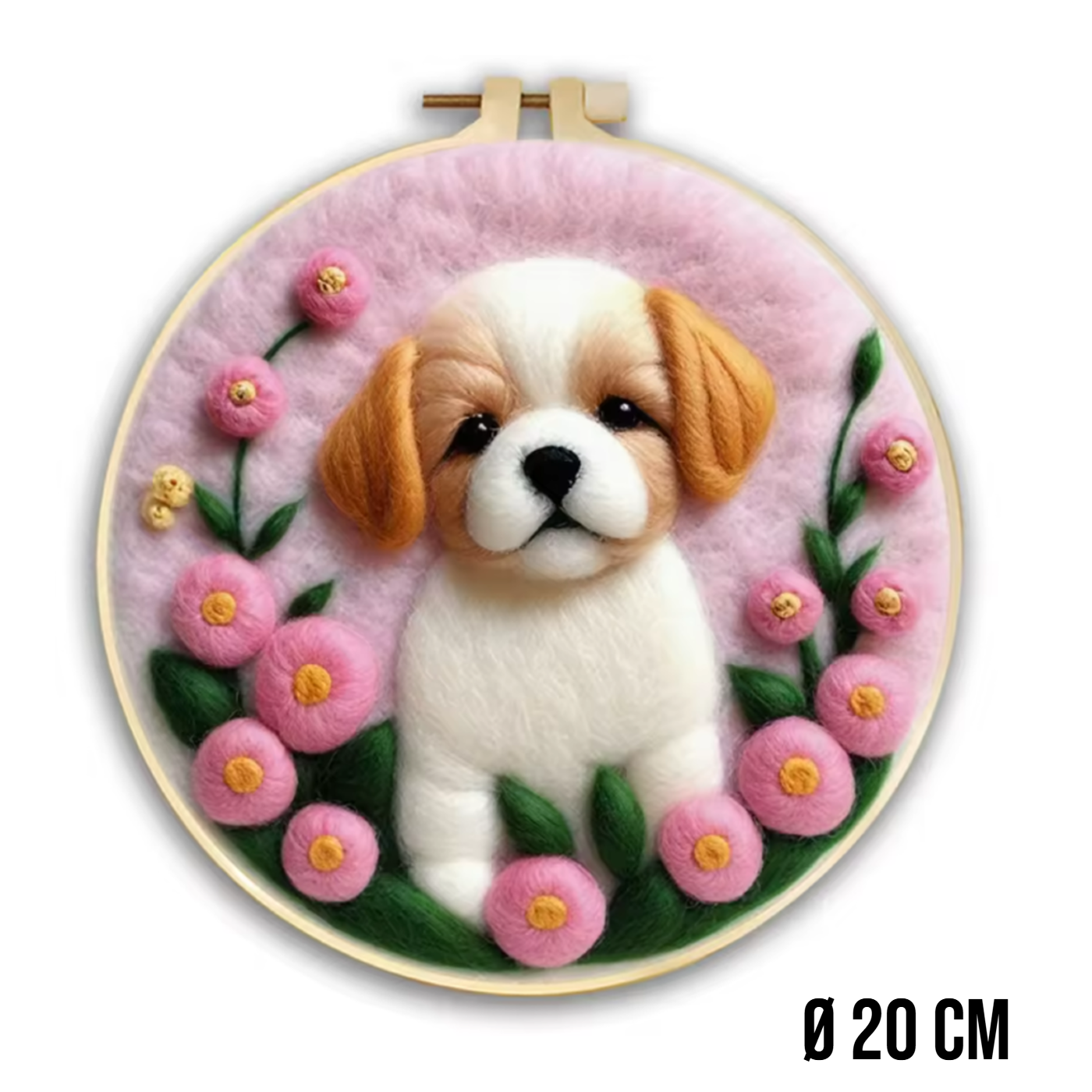 DIY Naaldvilt Wolvilt Pakket – Complete Starterset Puppy met Roze Lucht– Met Wol, Naalden, Borduurring & Handleiding – Creatief Hobbypakket voor Beginners & Gevorderden
