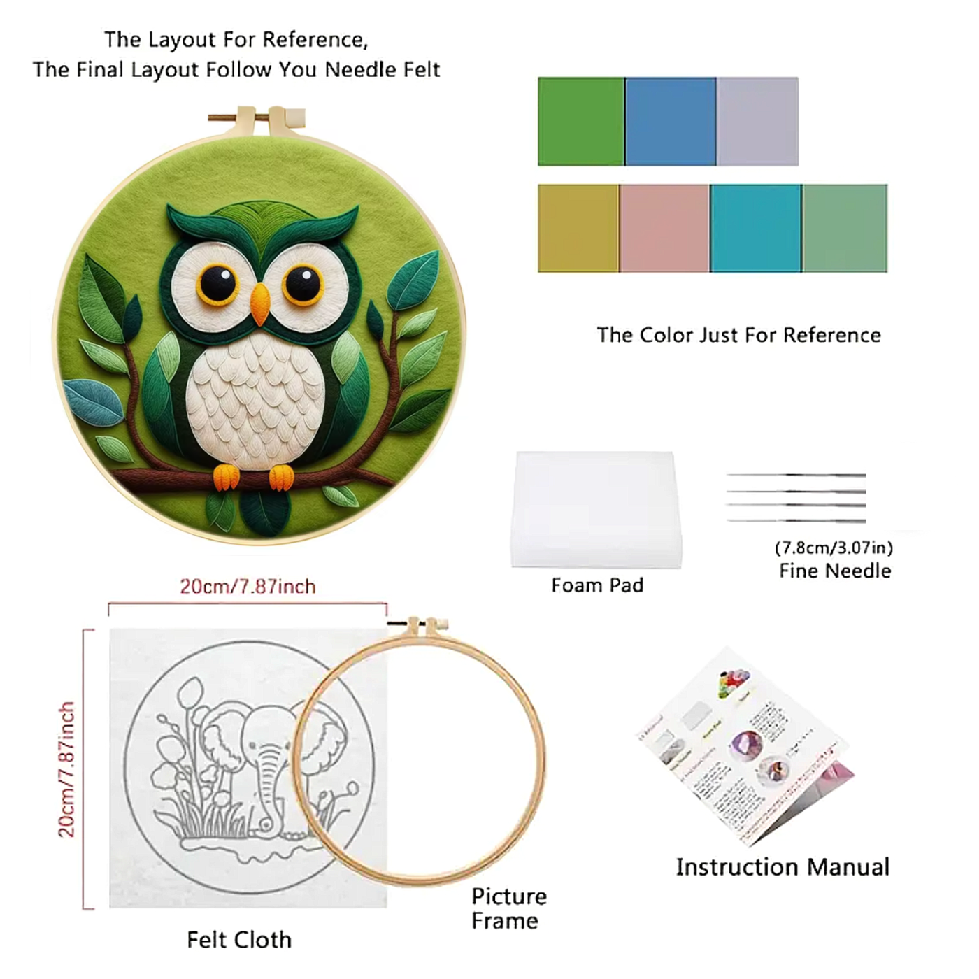 DIY Naaldvilt Wolvilt Pakket – Complete Starterset Uil – Met Wol, Naalden, Borduurring & Handleiding – Creatief Hobbypakket voor Beginners & Gevorderden