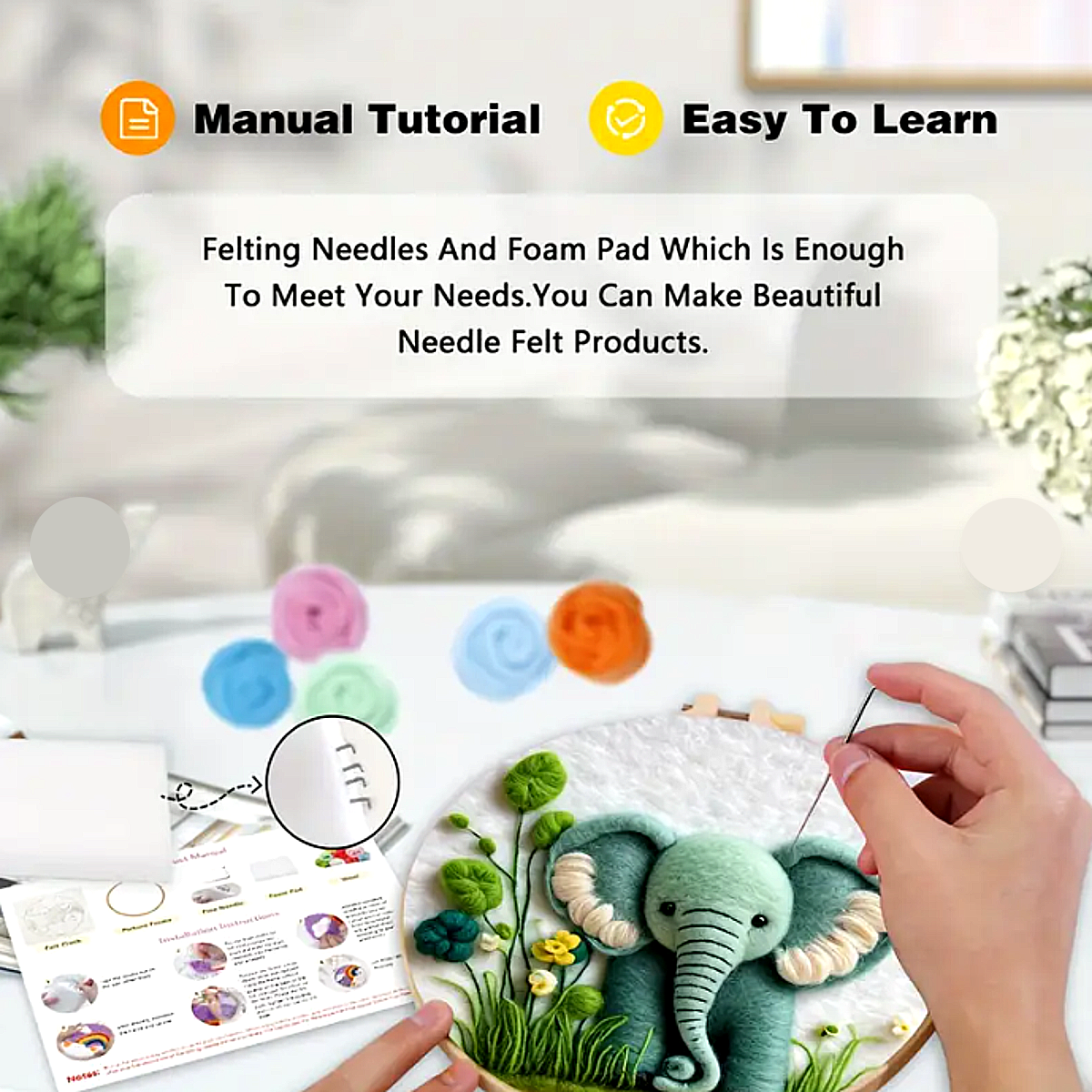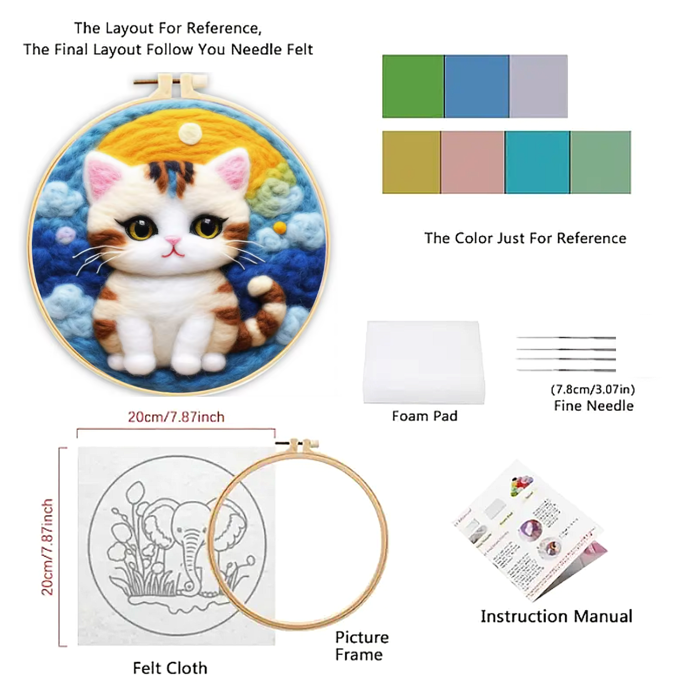 - Alle benodigdekleuren wolvilt: zorgvuldig geselecteerde vezels, nodig voor dit prachtige ontwerp