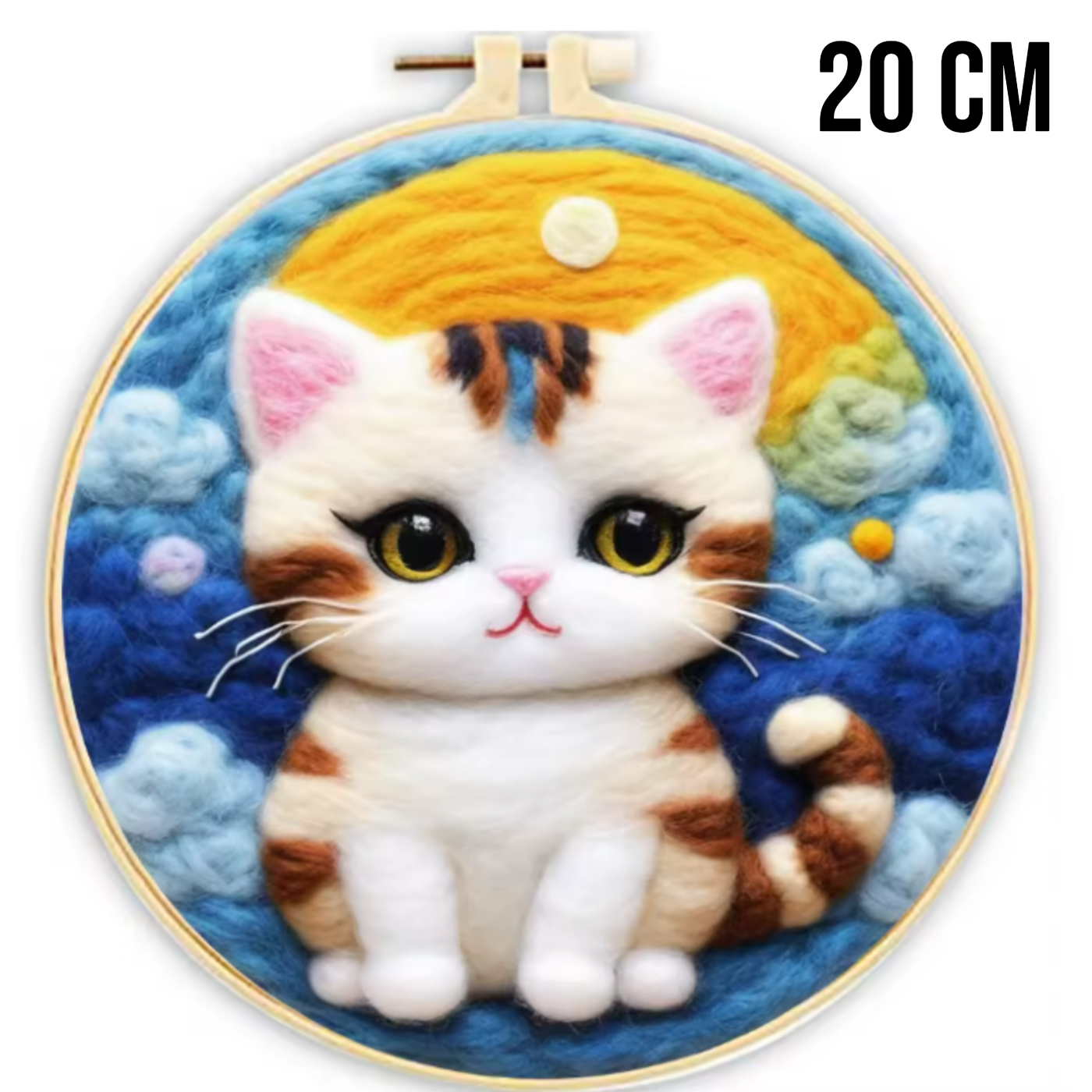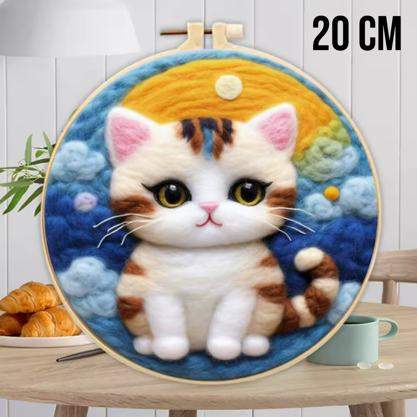 DIY Naaldvilt Wolvilt Pakket – Complete Starterset Wit Poesje – Met Wol, Naalden, Borduurring & Handleiding – Creatief Hobbypakket voor Beginners & Gevorderden
