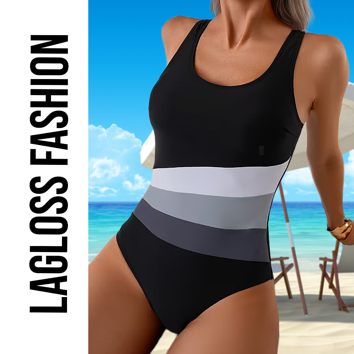 Dit stijlvolle LaGloss® badpak combineert modieuze elegantie met ultiem draagcomfort — een must-have voor elke vrouw die er op het strand of aan het zwembad fantastisch uit wil zien.