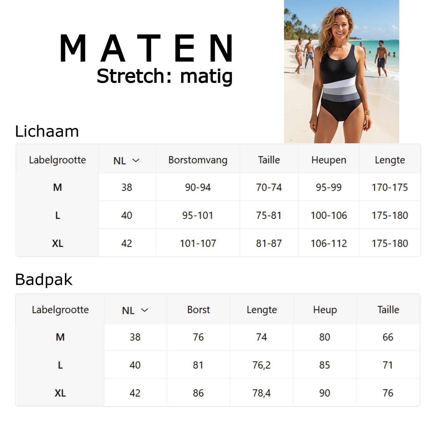 - Materiaal: 80% Polyamide, 20% Elastaan
