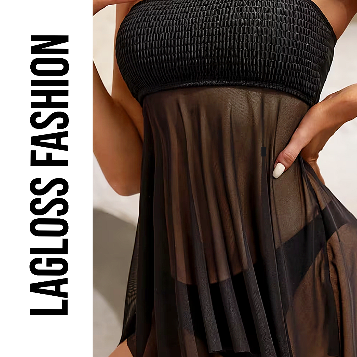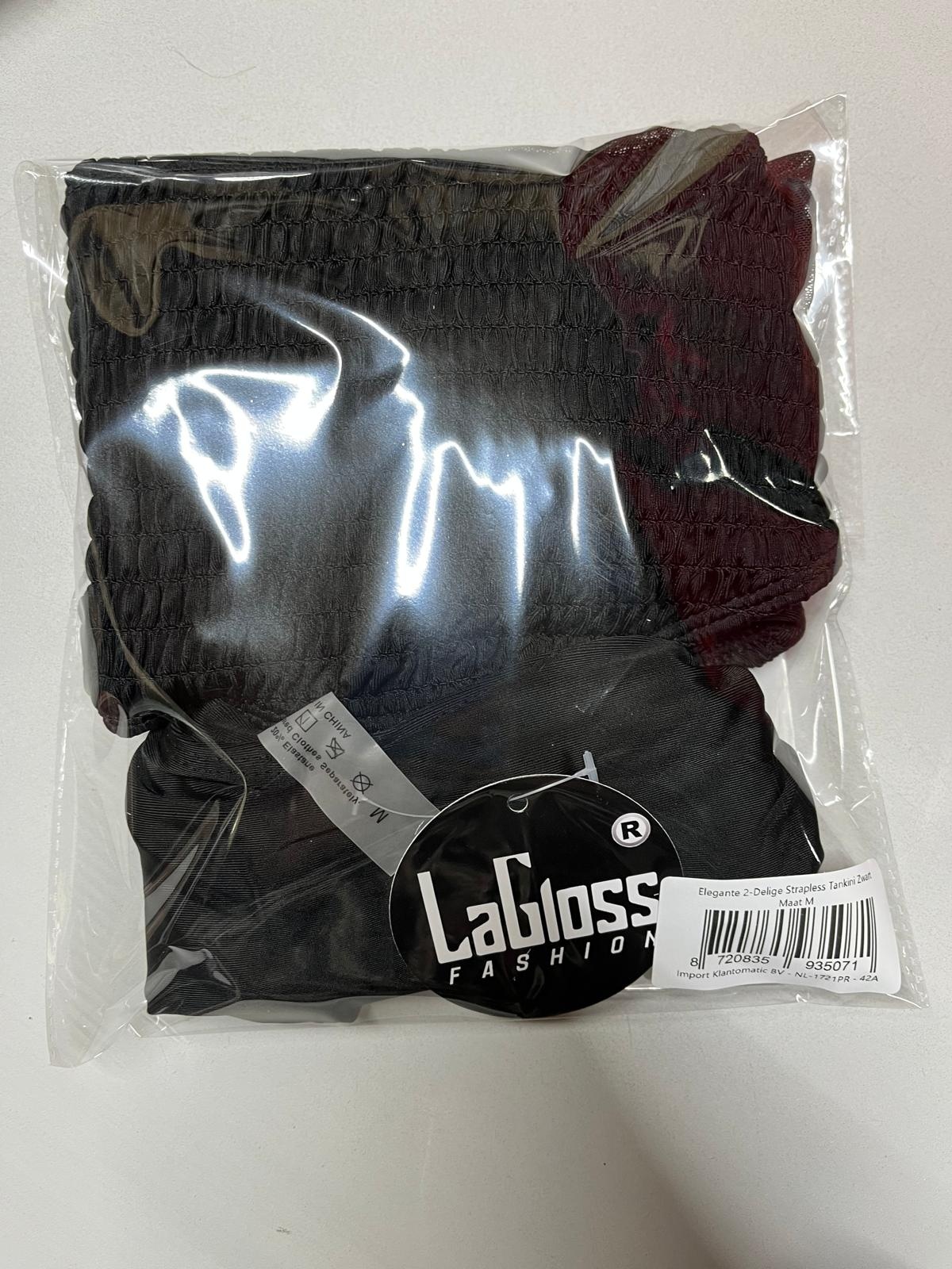 LaGloss® Elegante 2-Delige Tankini met Hoge Stretch & Verfijnde Details - Zwart Strapless Zwempak – Maat M