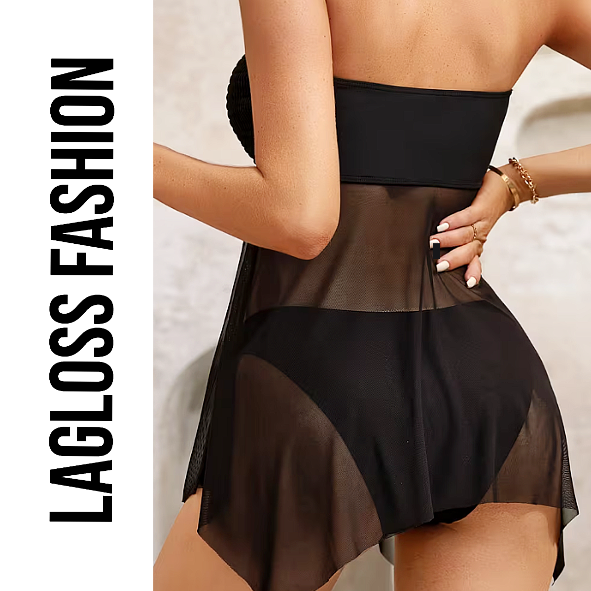 LaGloss® Elegante 2-Delige Tankini met Hoge Stretch & Verfijnde Details - Zwart Strapless Zwempak – Maat S