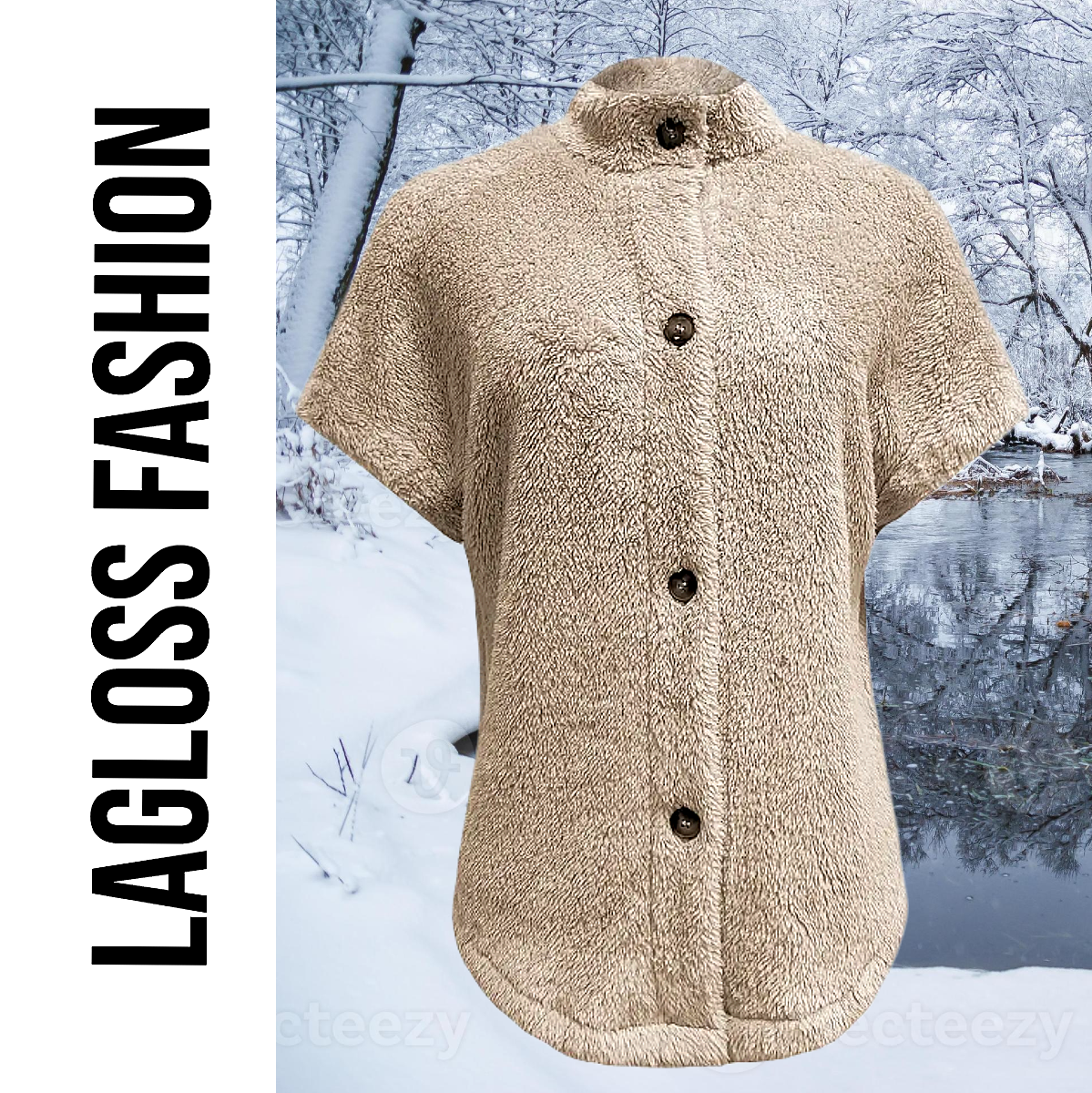 LaGloss® Elegante Teddybeer Vest – Korte Mouwen Blazer met Enkele Knoopsluiting – Khaki H-Lijn Silhouet – Herfst/Winter Casual Buitenkleding – Maat S