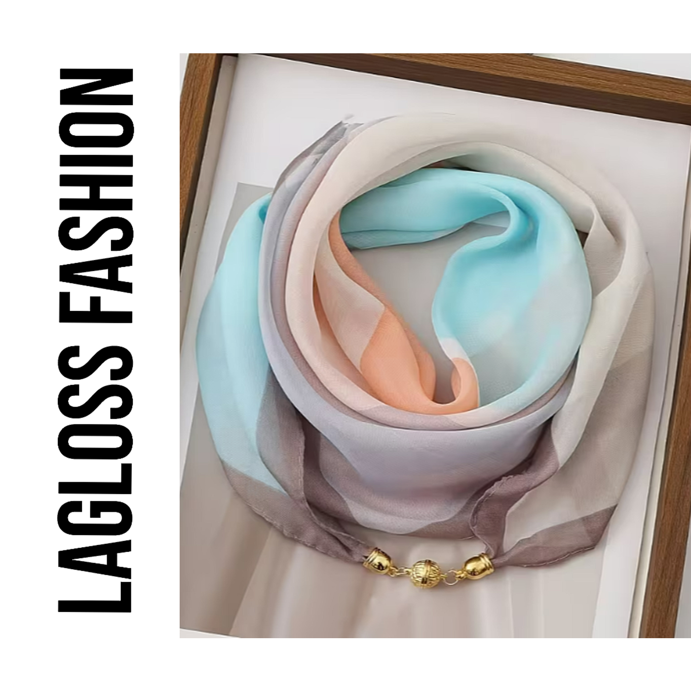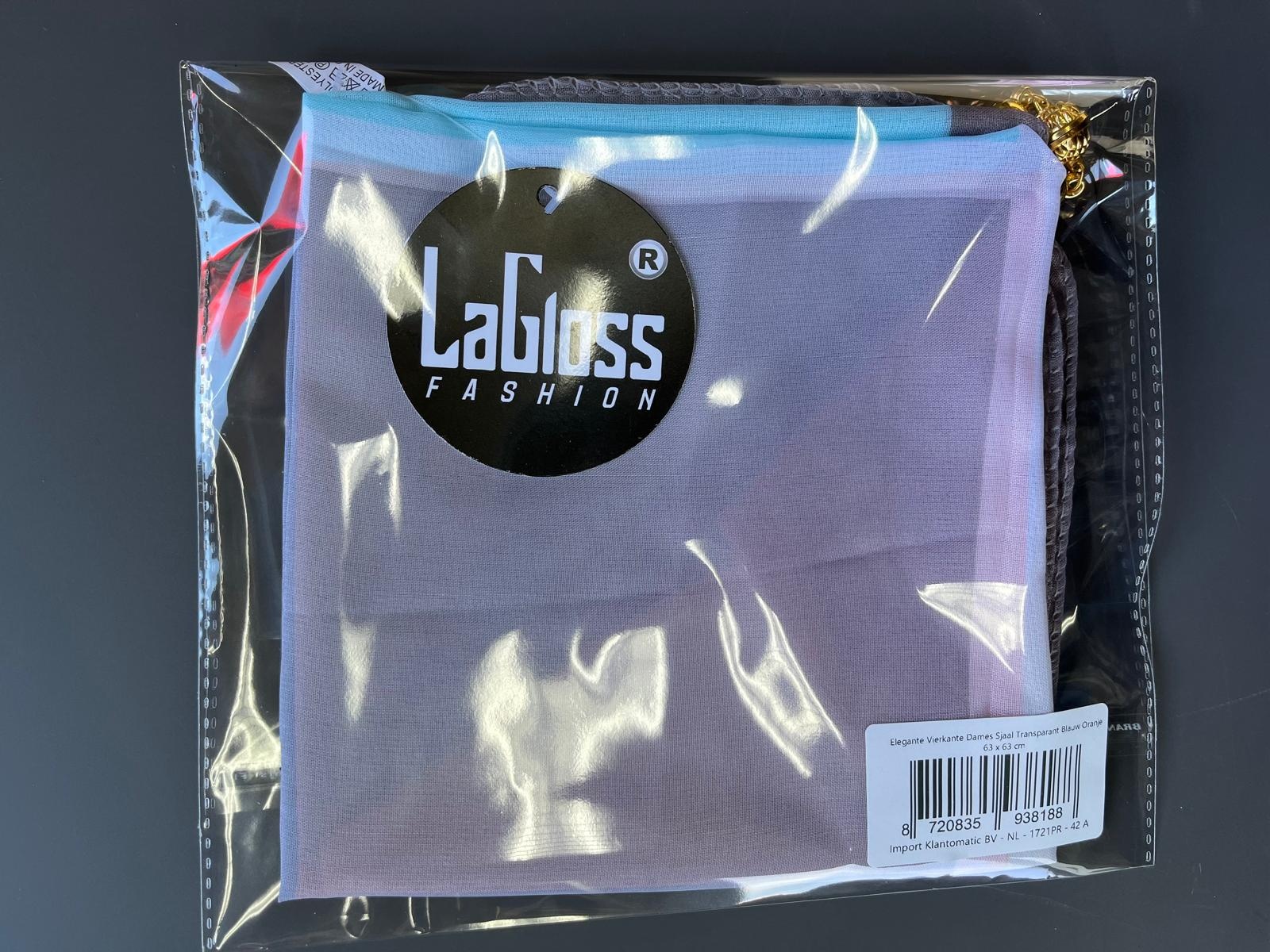 LaGloss® Elegante Vierkante Dames Sjaal Transparant Blauw Oranje – 63 x 63 cm