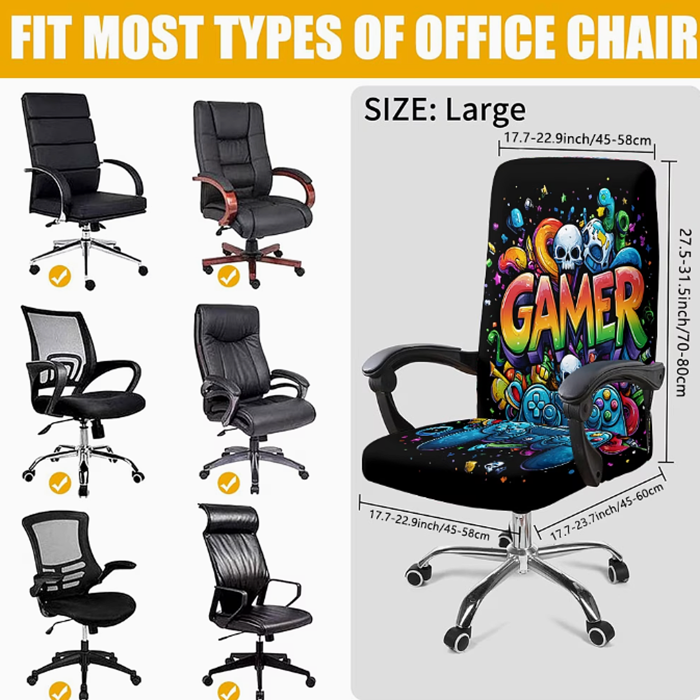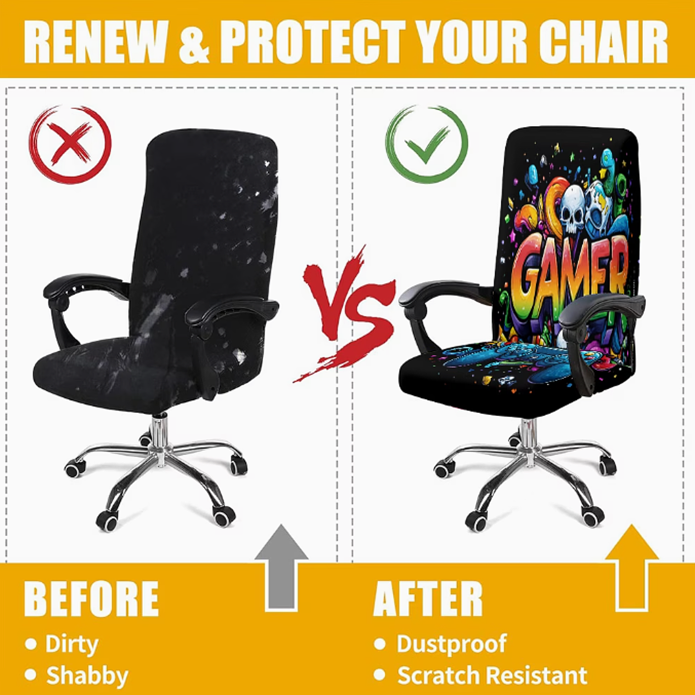 Deze gaming stoel hoes is meer dan alleen een beschermhoes: het is een echte eyecatcher. Het graffiti-ontwerp met speelse letters en felle kleuren maakt uw stoel onderdeel van uw gaming decoratie. Of u nu uw bureaustoel cover gebruikt in een gamekamer, slaapkamer of thuiskantoor, u creëert direct een creatieve en energieke sfeer. Ook als cadeau voor een gamer of student is deze stoel hoes een originele en bruikbare keuze.