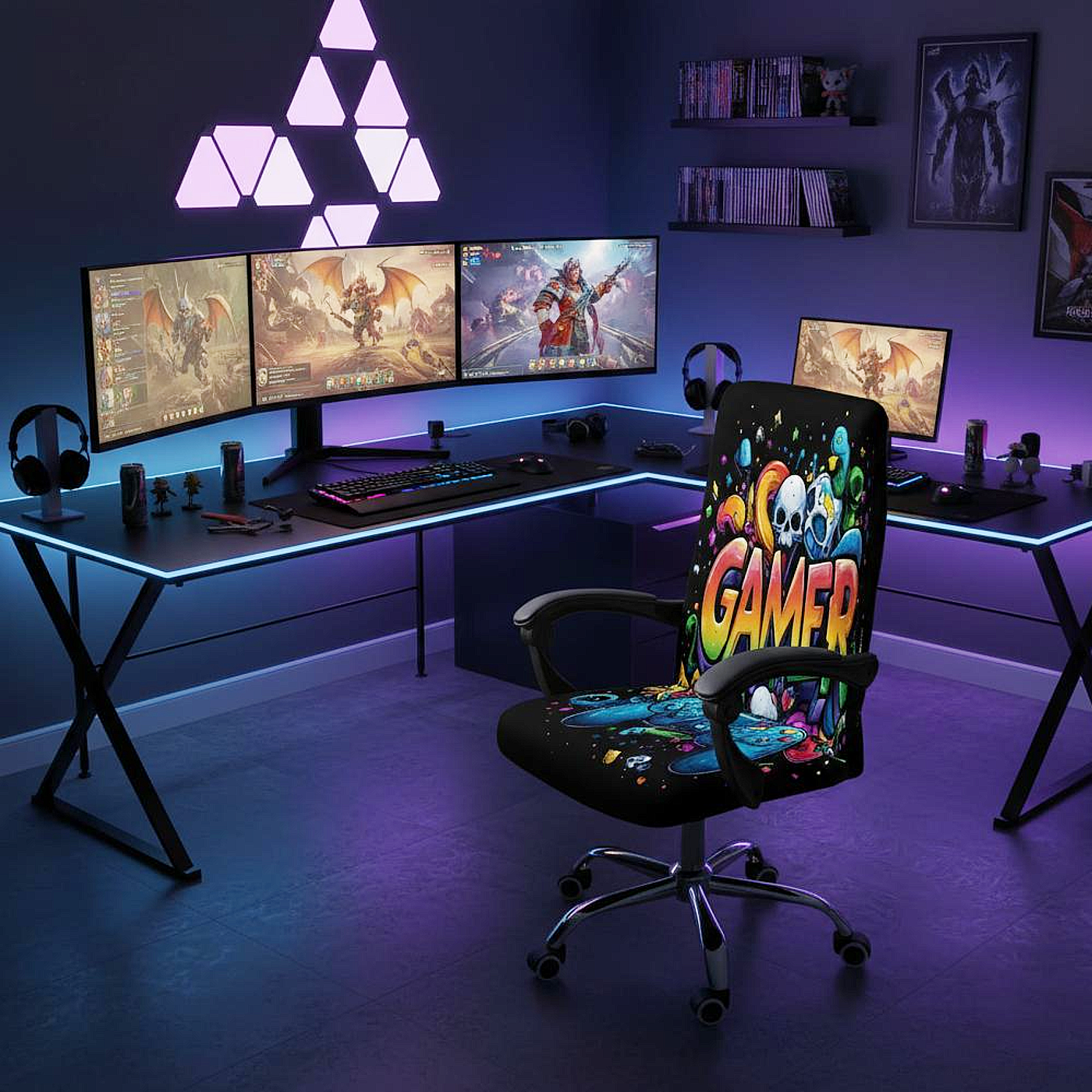 Geef uw gamehoek, kantoor of slaapkamer een stoere en moderne uitstraling met deze kleurrijke bureaustoelhoes in graffiti-stijl met gaming letterpatroon. Deze opvallende gaming stoelhoes is perfect voor iedereen die zijn stoel wil beschermen én tegelijkertijd een unieke, urban look aan de ruimte wil geven. Het speelse graffiti-design met krachtige kleuren zorgt direct voor meer karakter in uw interieur en past perfect bij een moderne gaming setup of creatieve werkplek.
