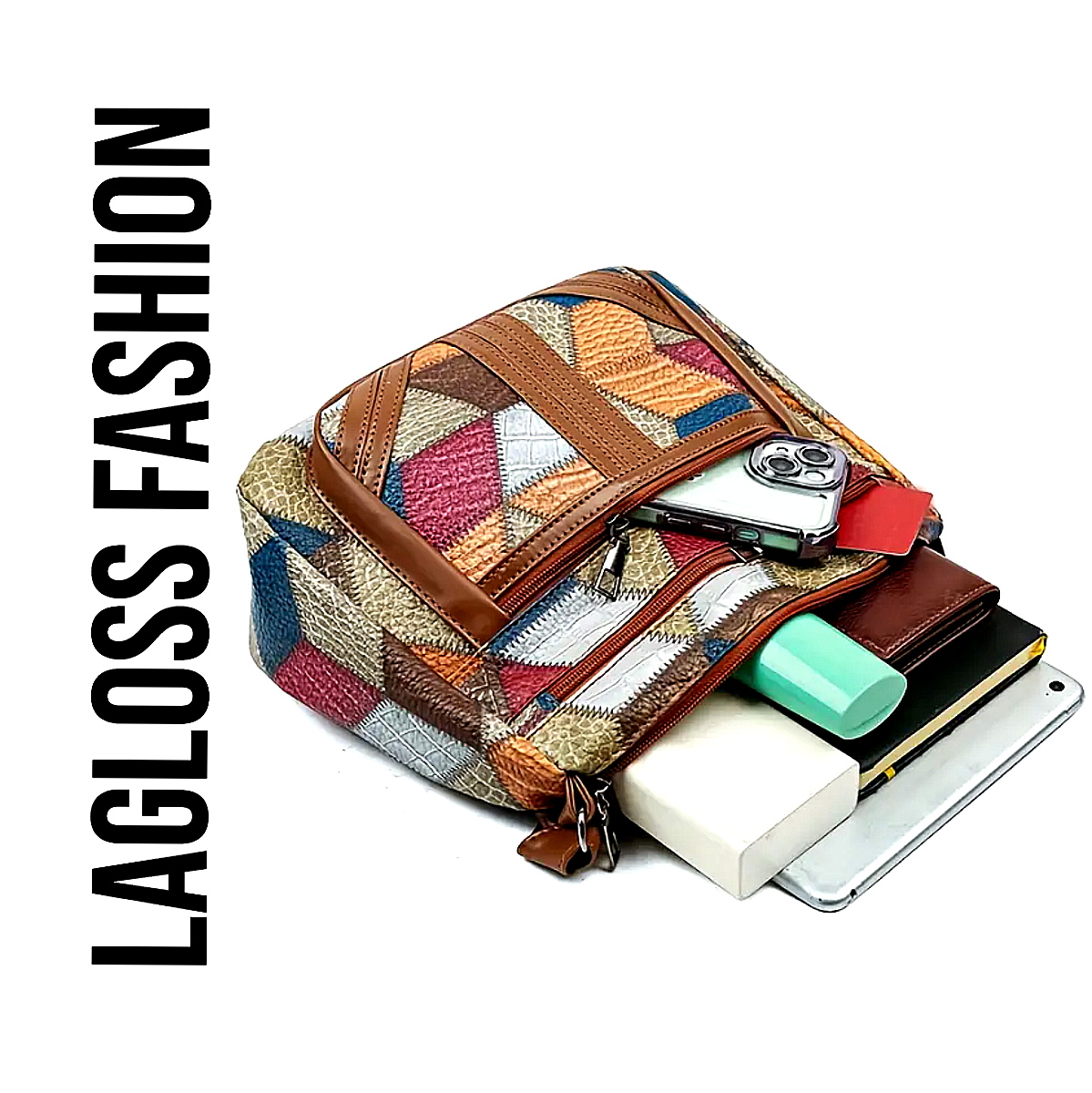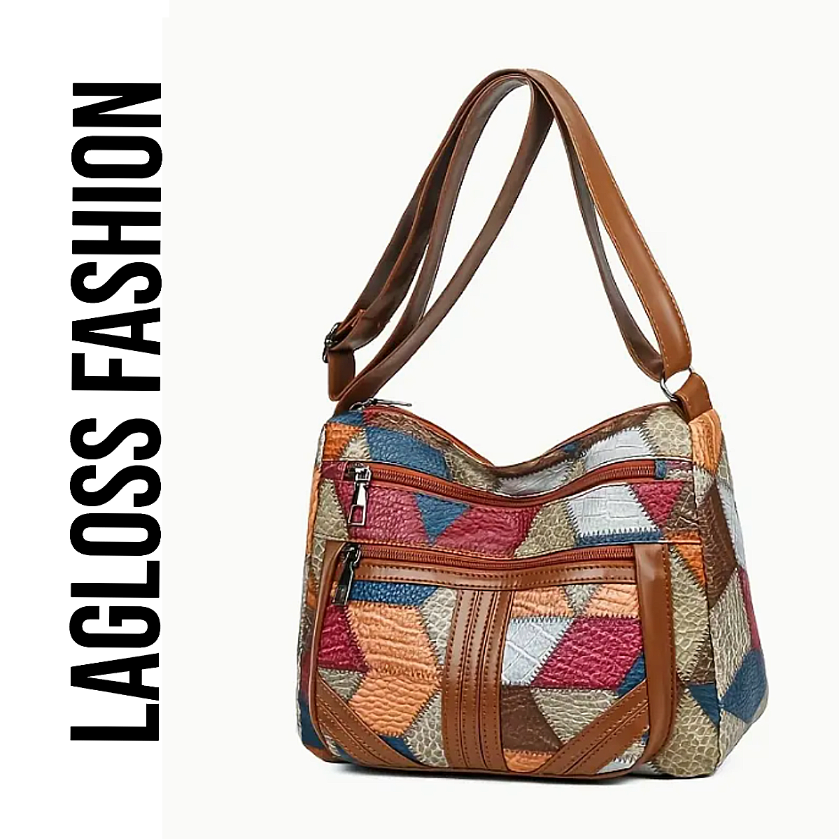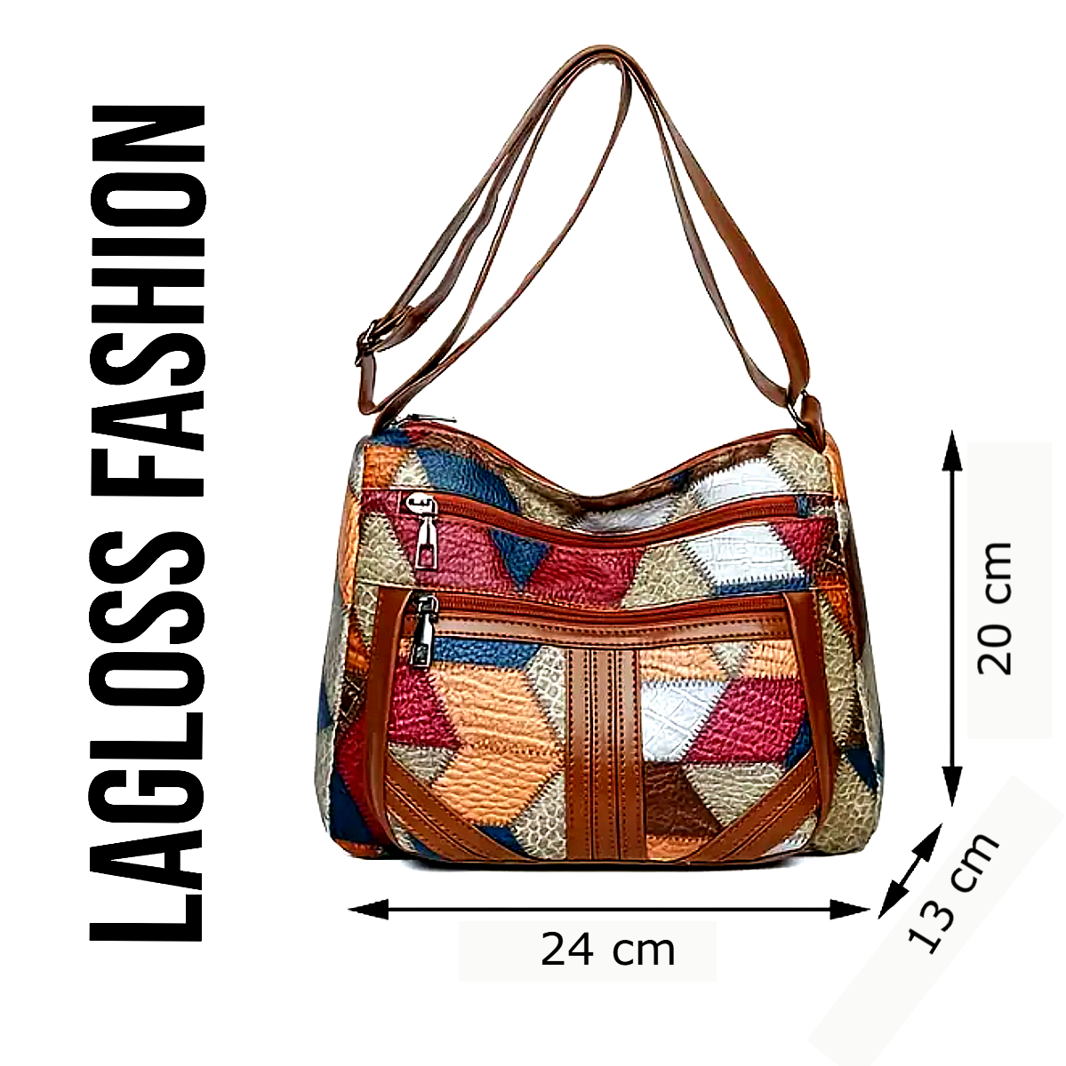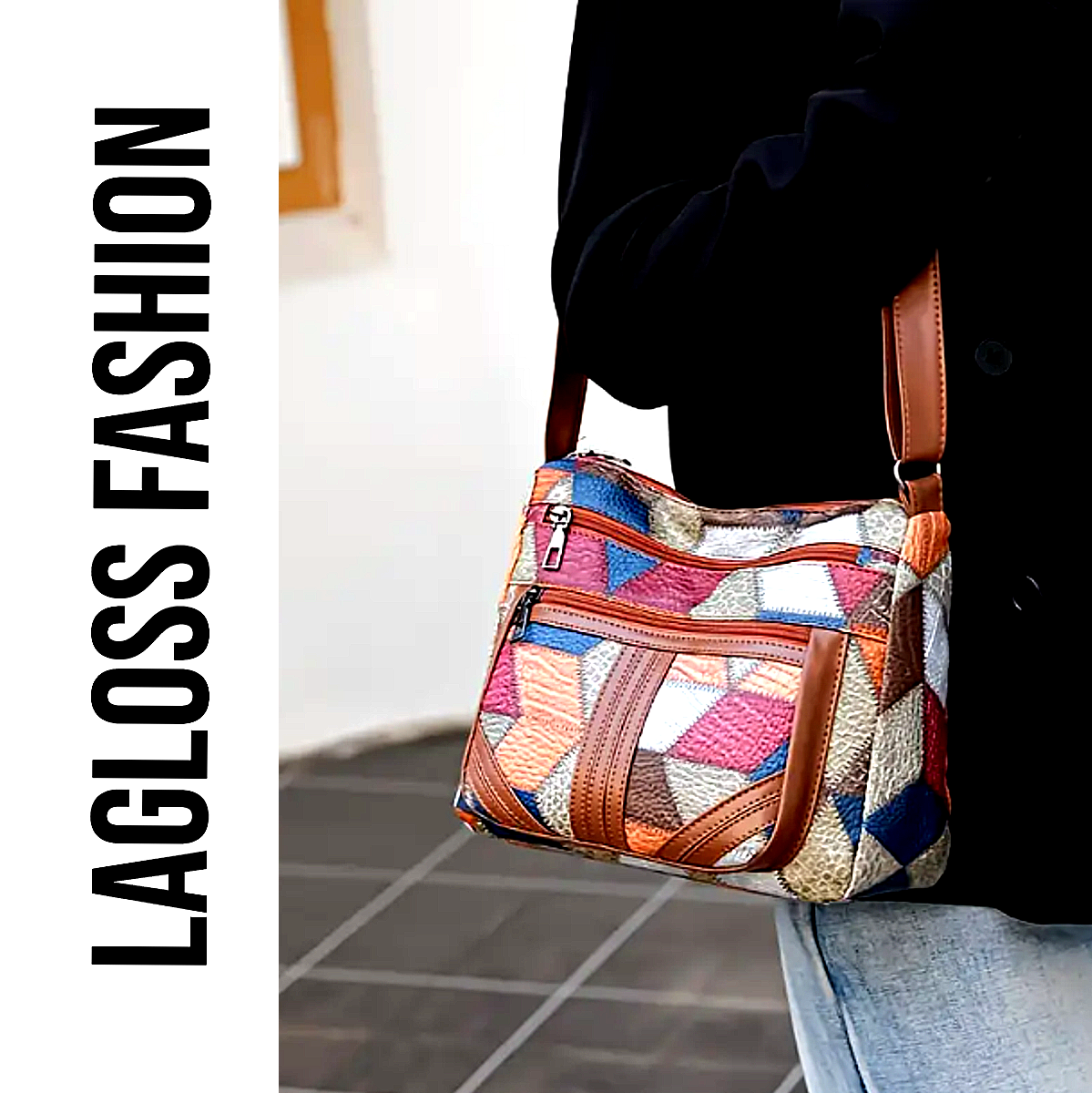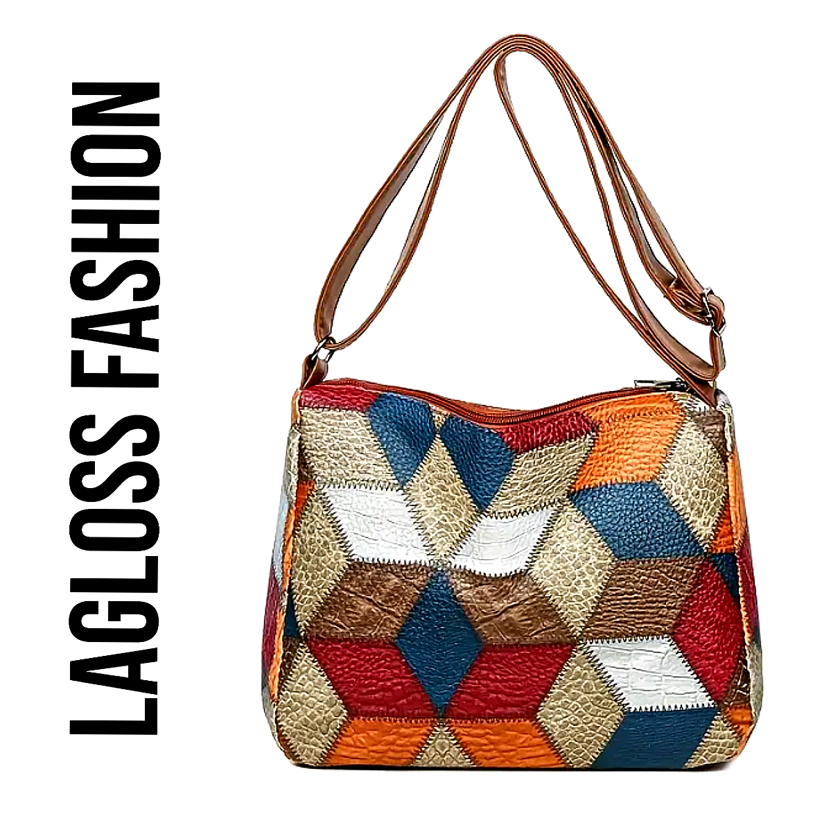 LaGloss® Geometrisch Patroon Schoudertas – Verstelbare Crossbody Tas met Veilige Ritssluiting – Lichtgewicht & Modieus in Blauw, Oranje, Beige en Bruin