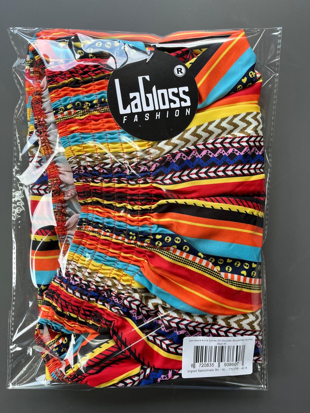 LaGloss® Gestreepte Korte Dames Off-Shoulder Blouse Met Ruches – Multicolor – Zomermode – Fashion – Casual – Maat M