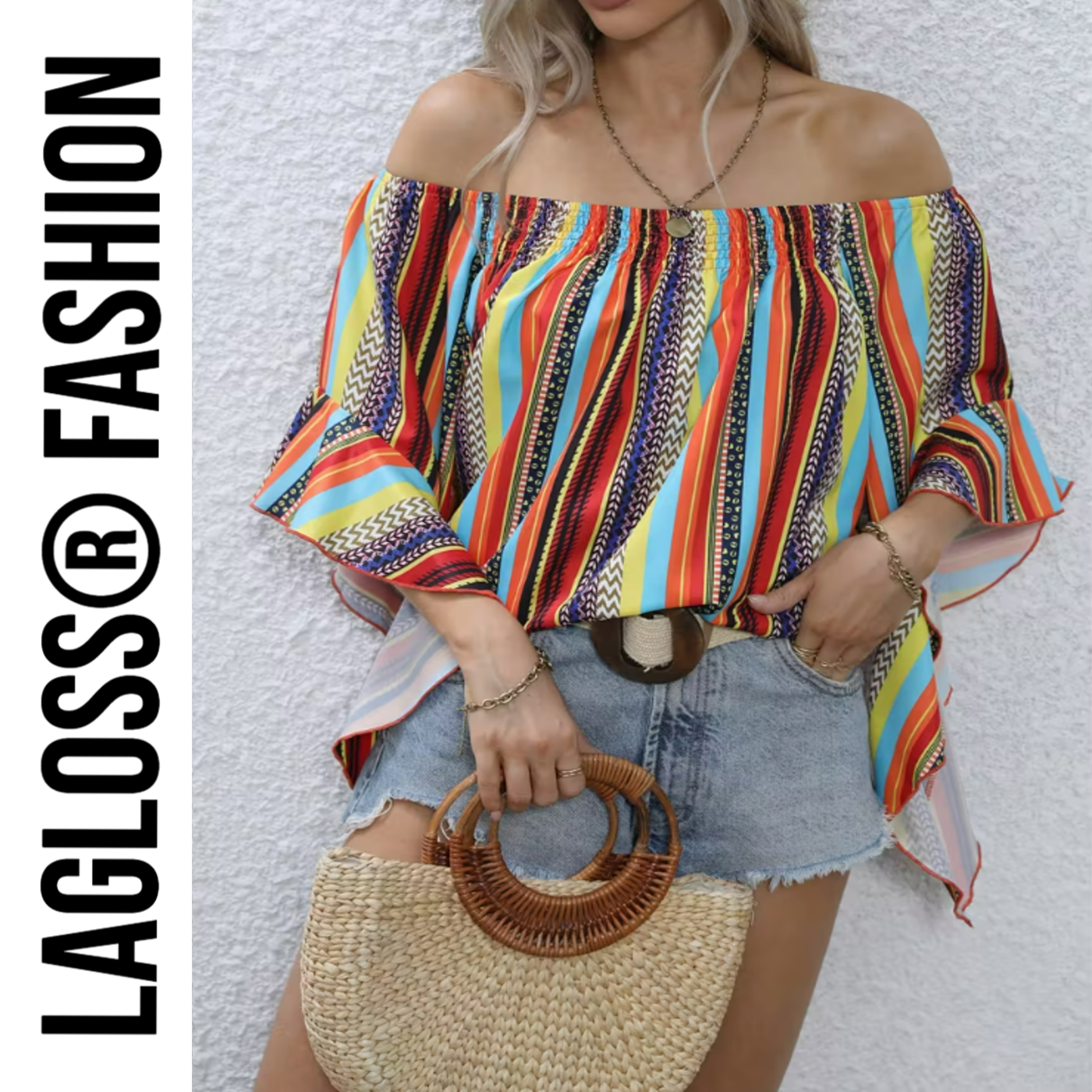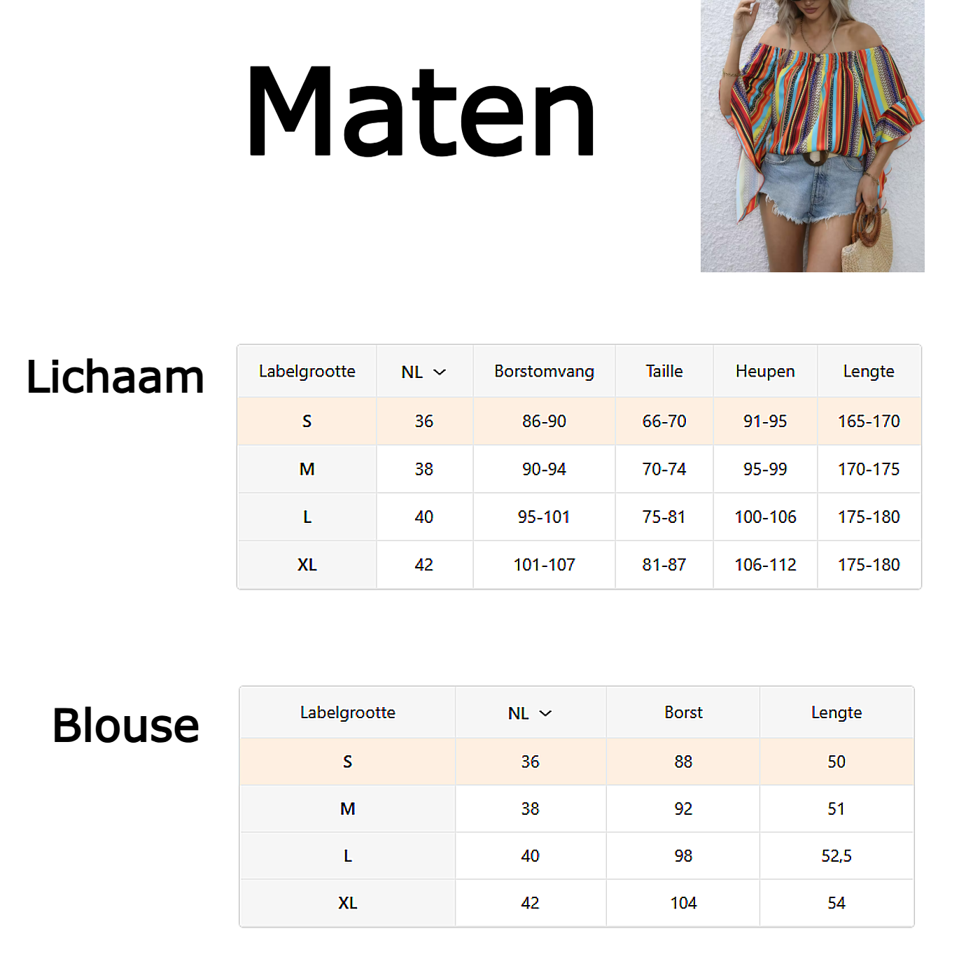 Geef uw zomerse outfit een frisse en stijlvolle uitstraling met deze elegante korte off-shoulder blouse voor dames. Deze kleurrijke blouse met speelse strepen en verfijnde details is perfect voor vrouwen die houden van een modieuze en vrouwelijke look.