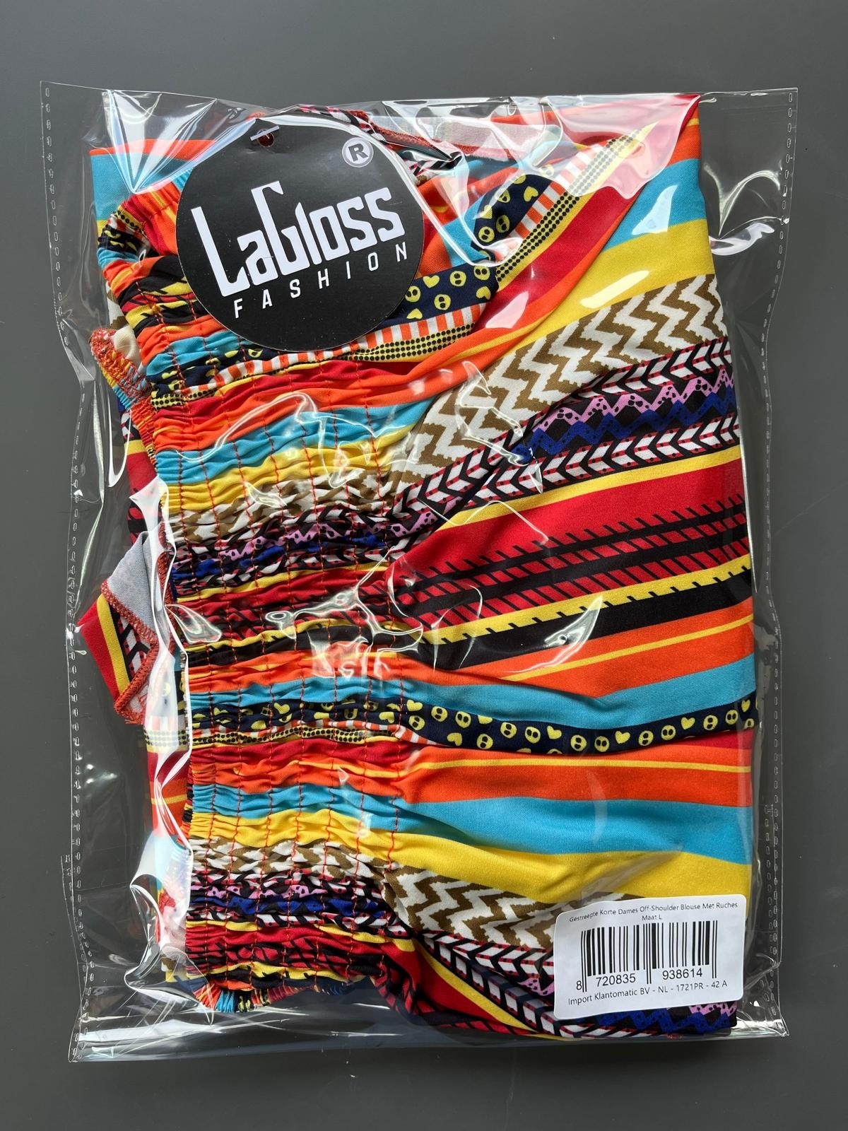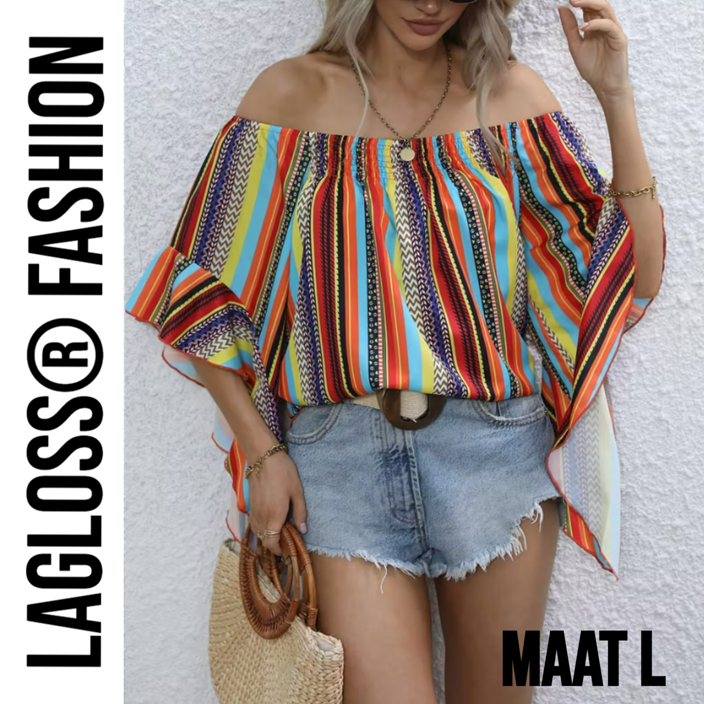 LaGloss® Gestreepte Korte Dames Off-Shoulder Blouse Met Ruches – Multicolor – Zomermode – Fashion – Casual – Maat L - Copy