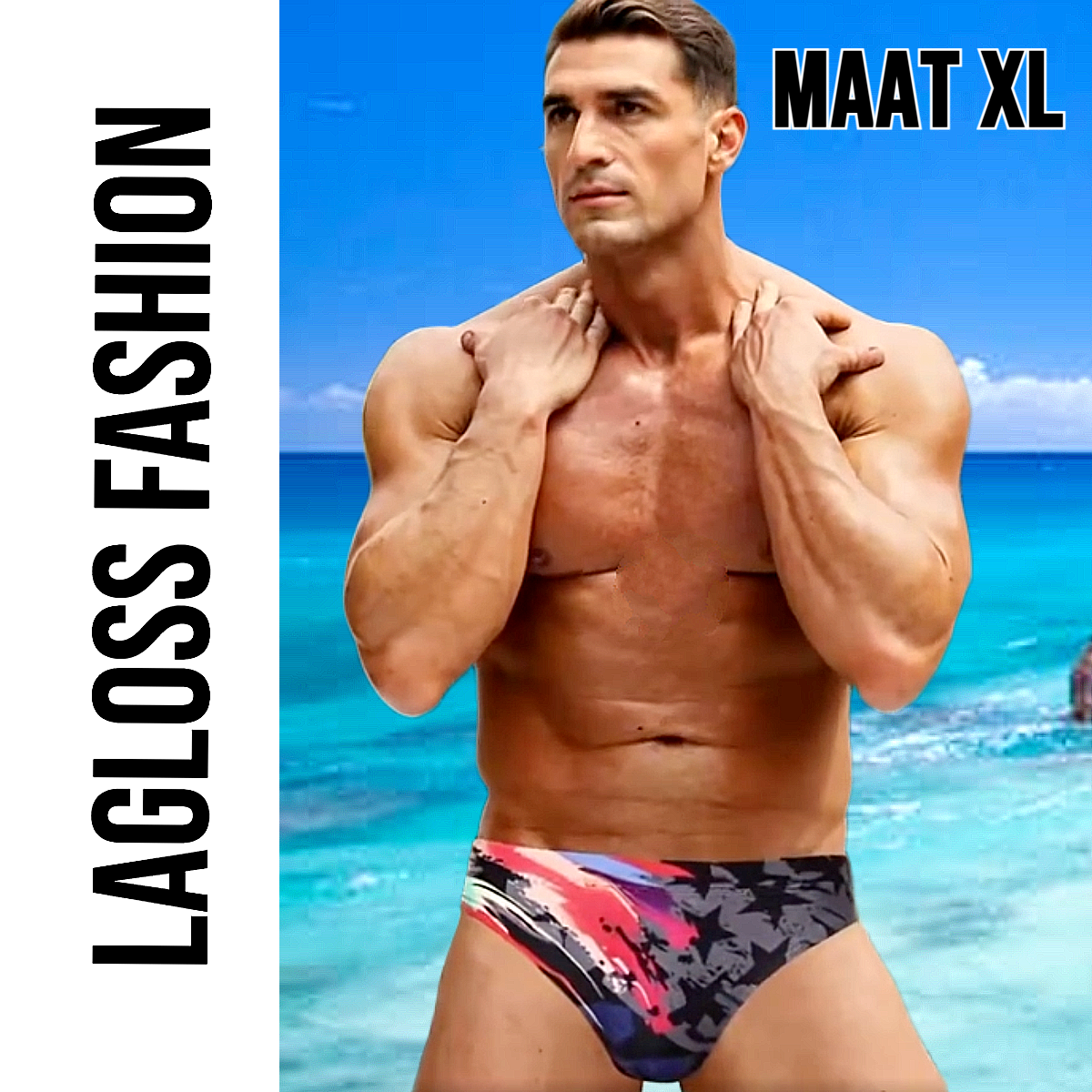 LaGloss® Heren Kleurige Sterren Design Zwemslip Zwembroek - Driehoekig - Sportief - Stretch – Comfortabel - Sneldrogend & Lichtgewicht - Maat XL