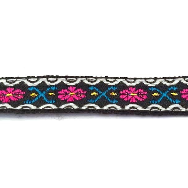 8,5meter - SIERBAND GEWEVEN BLOEMETJES 2,3cm breed - ZWART MET BLOEMETJES PATROON- versieren - knutselen - knutselwerk - naaien - lint - stof - applicatie - afwerkband - home deco