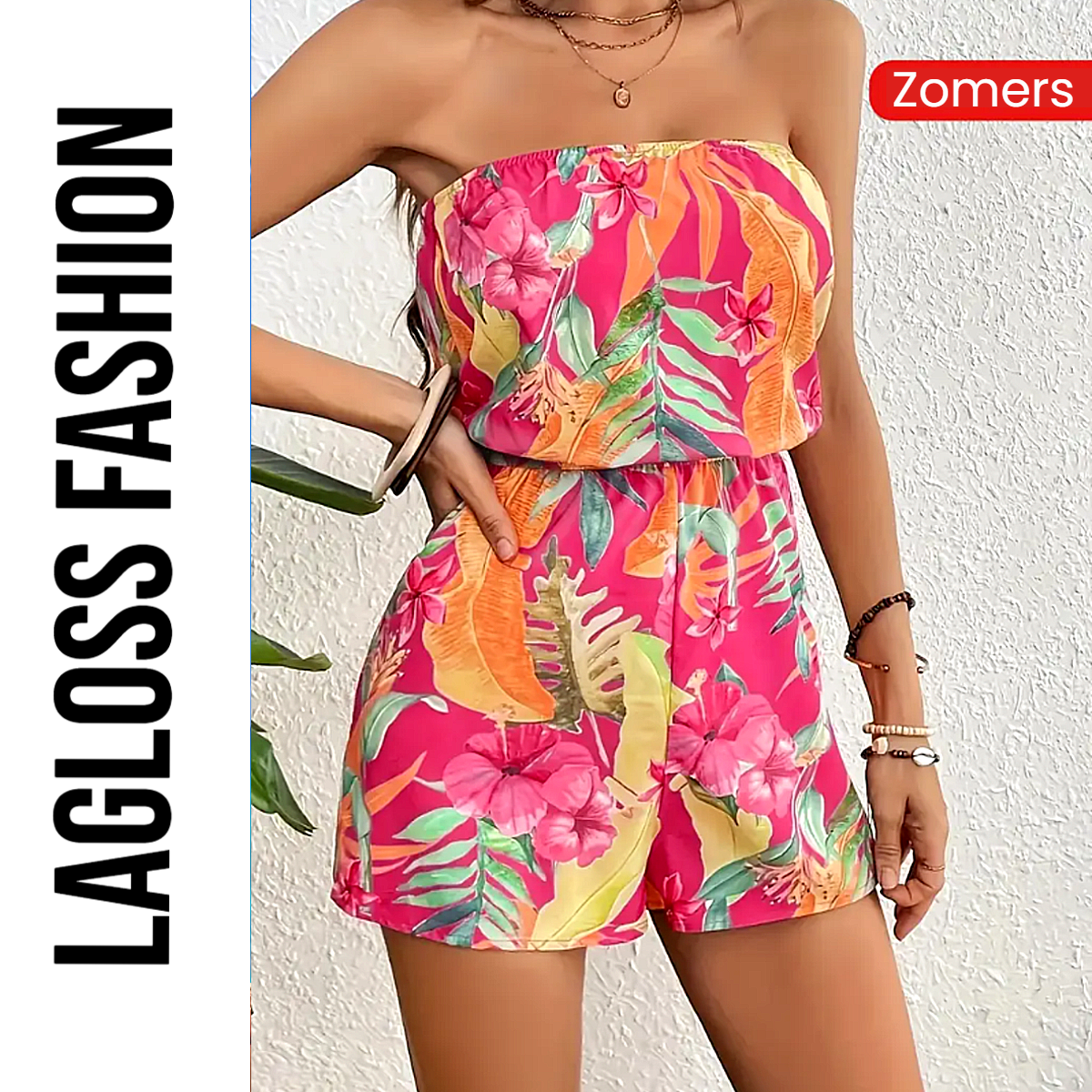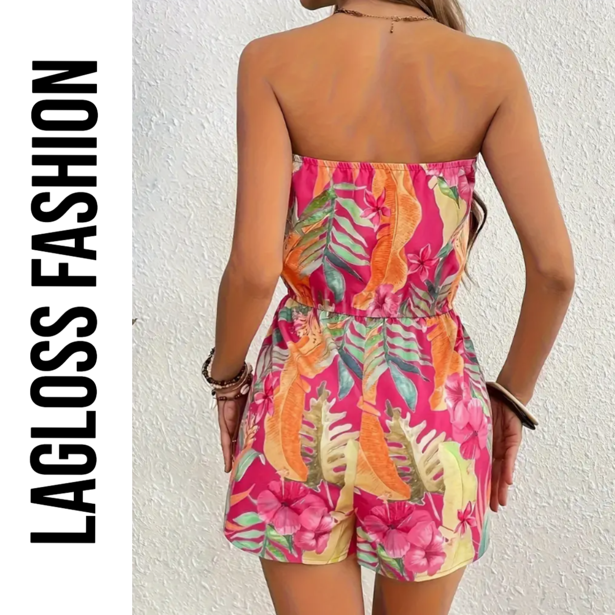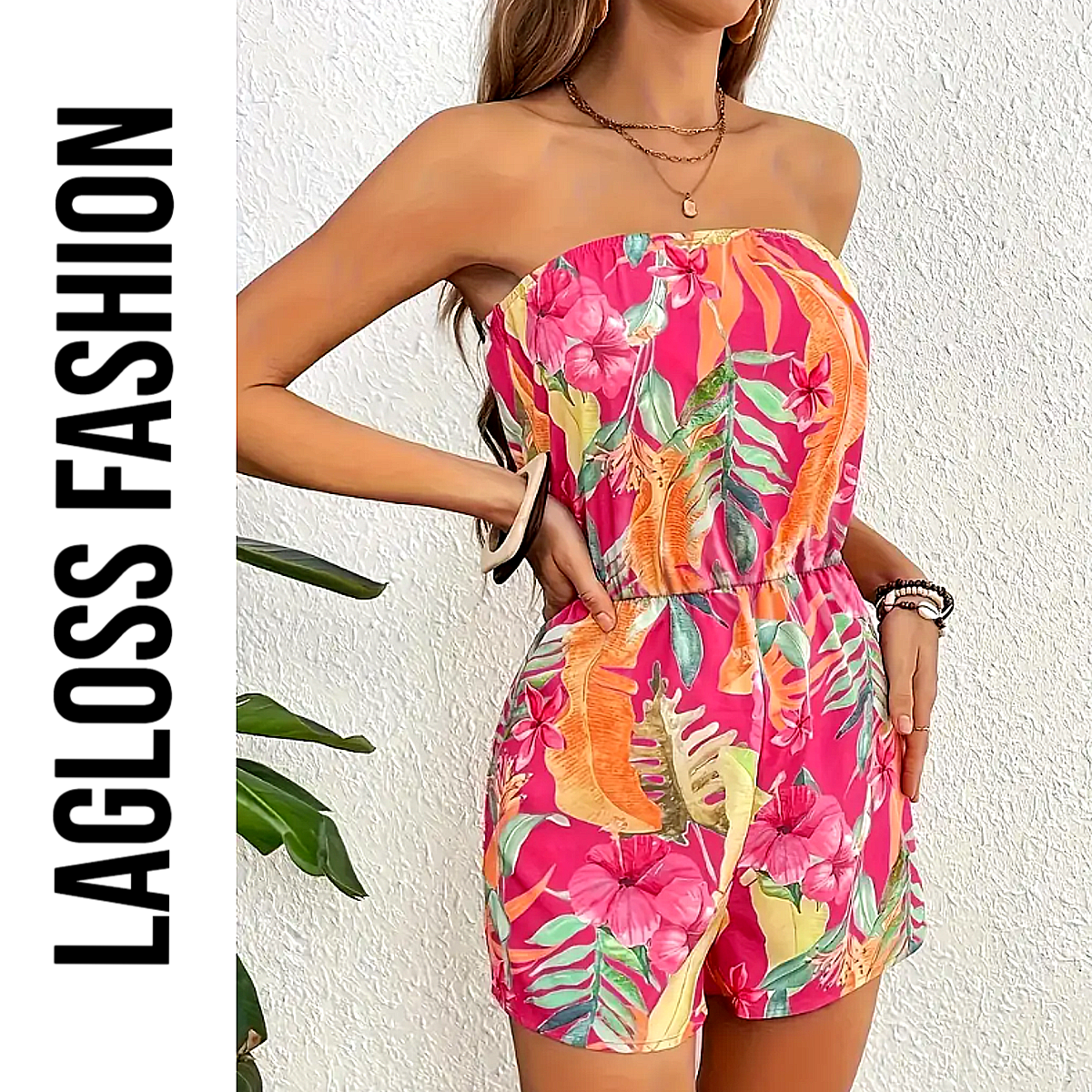 Maak je zomergarderobe compleet met de LaGloss® Strapless Jumpsuit met Roze Bloemenprint. Dit veelzijdige en stijlvolle kledingstuk combineert comfort met een opvallende uitstraling, perfect voor zonnige dagen, vakanties en zomerse feestjes.