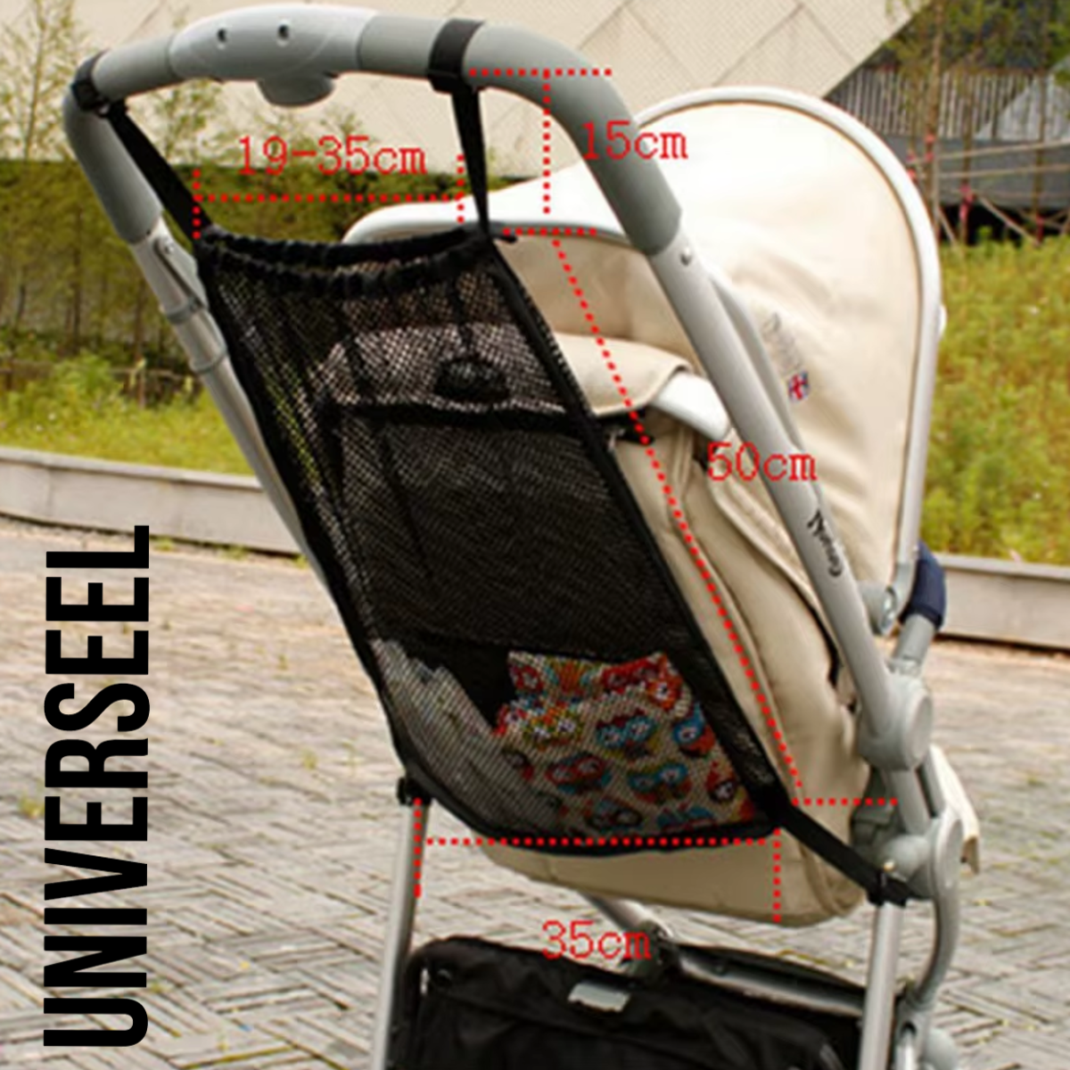 Of je nu een lange wandeling maakt of snel even naar de supermarkt gaat, deze Kinderwagen Opslag Mesh Tas is de ideale oplossing om al je babyspullen netjes op te bergen en altijd bij de hand te hebben.