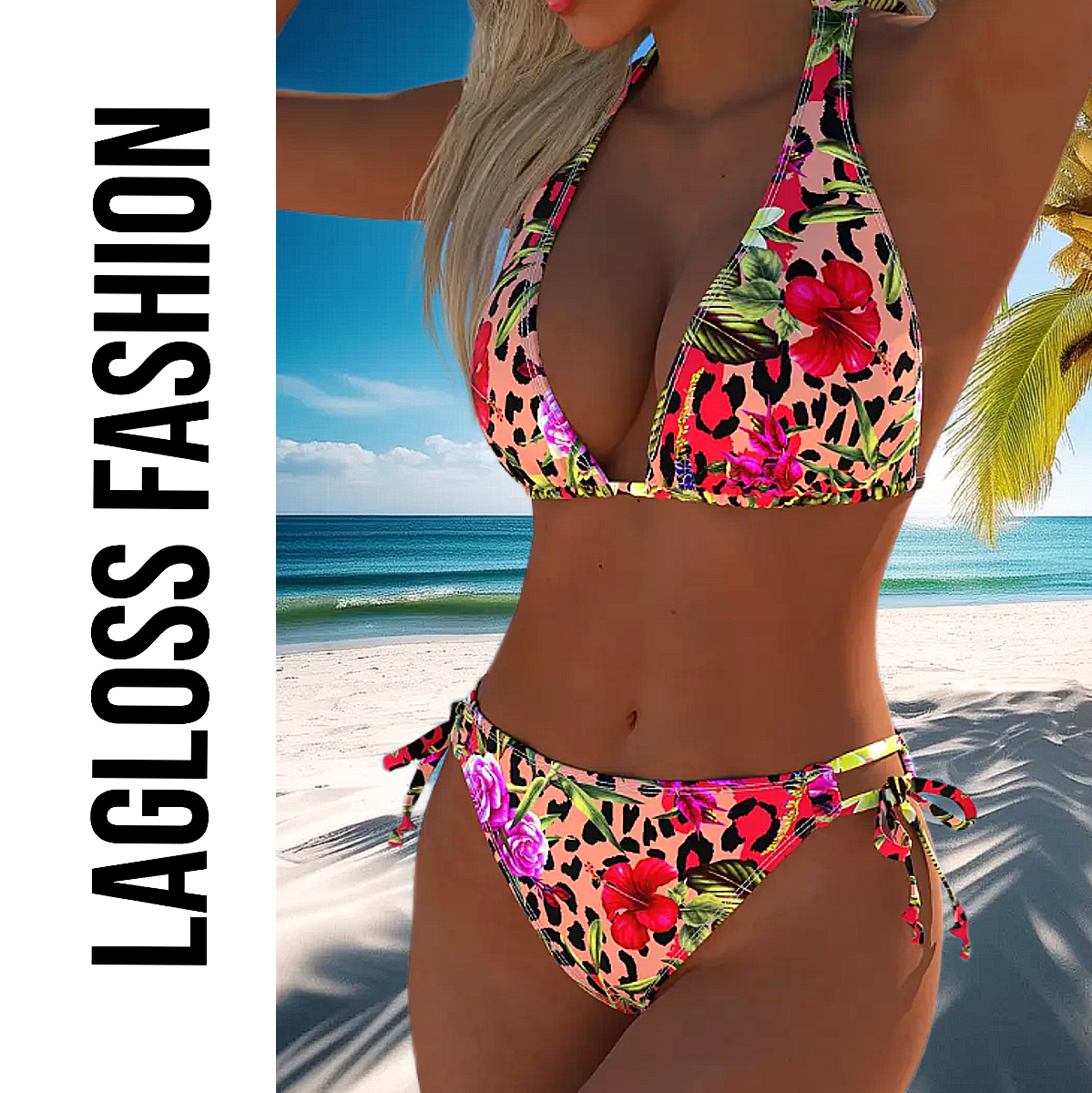 Ontdek de Dames Bloemenprint Bikini Set, een stijlvolle en vrouwelijke keuze voor zonnige dagen aan zee of het zwembad. Deze 2-delige bikini combineert een charmante V-hals top met halterband en een hoog gesneden broekje voor een flatterende pasvorm.