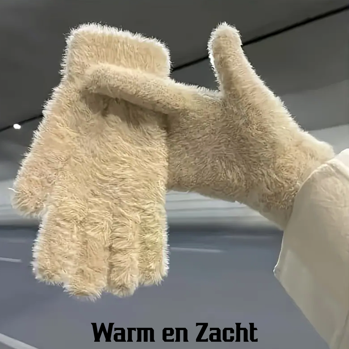 LaGloss® Luxe Pluche Handschoenen Beige - Warme Winterhandschoenen - Elegant & Rekbaar Elastaan %%
