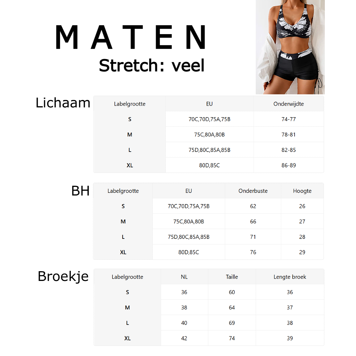 TIP: Raadpleeg de MATEN-pagina bij de foto’s voor de juiste maatvoering !