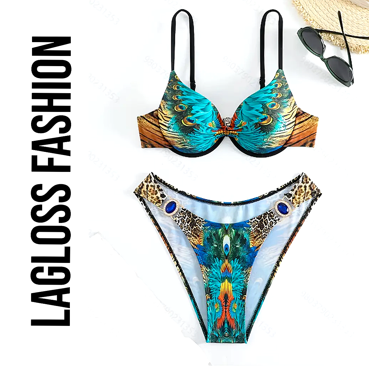 De LaGloss® Bohemian Stijl Bikini Set brengt kleur, karakter en klasse naar jouw zomerse garderobe. Dit tweedelige badpak is geïnspireerd op exotische Bohemian prints met pauw-, tijger- en leeuwmotieven, die zorgen voor een opvallende en stijlvolle uitstraling tijdens je strand- of zwembadmomenten.