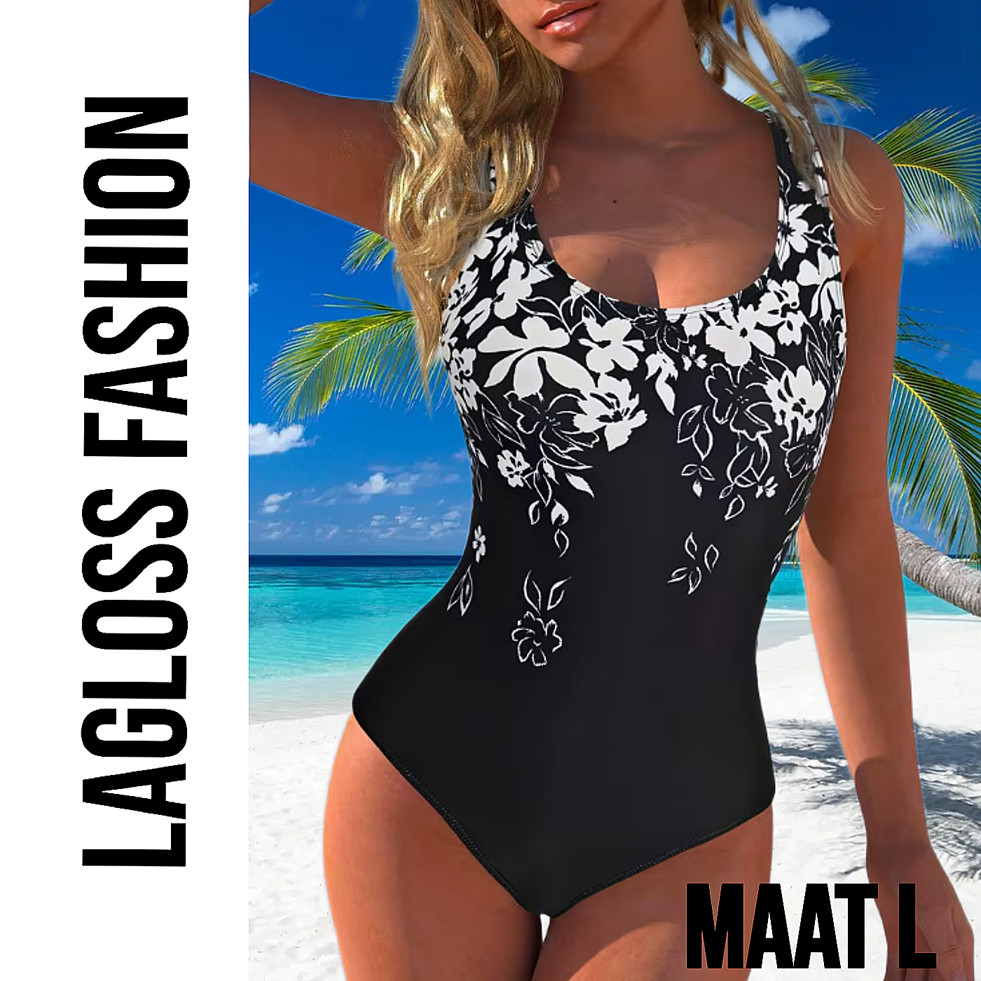 Straal zelfvertrouwen en elegantie uit met dit stijlvolle zwarte dames badpak met witte bloemenprint. Dit moderne en tijdloze ontwerp combineert een klassieke zwarte basis met een frisse en vrouwelijke bloemenprint, waardoor het perfect is voor elke stranddag, zwembadbezoek of zonnige vakantie.