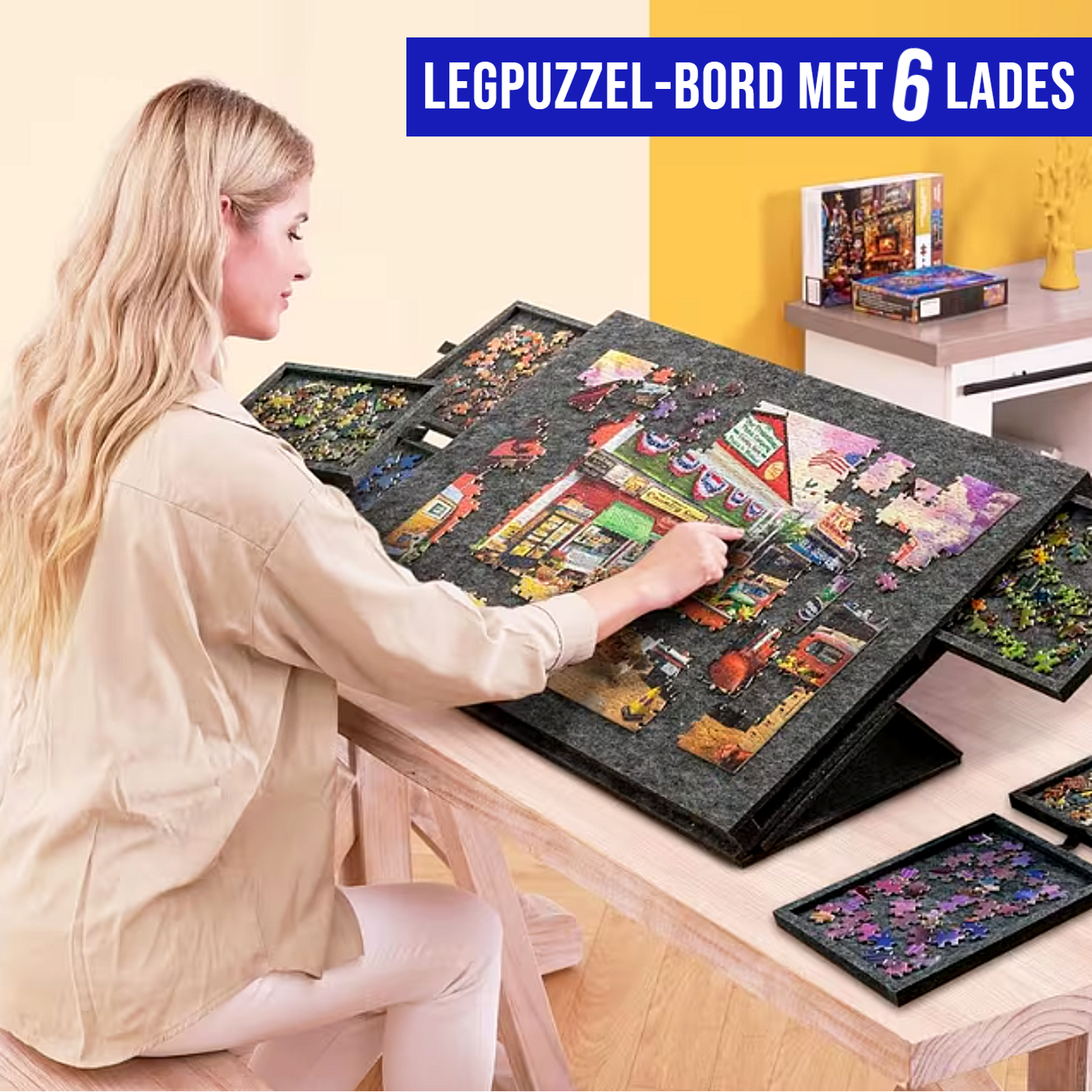 Bent u een echte puzzelliefhebber en zoekt u een praktische manier om uw puzzels overzichtelijk te leggen en op te bergen? Met het Allernieuwste Legpuzzel Bord met 6 Lades wordt puzzelen nog leuker, comfortabeler en georganiseerder. Deze handige puzzel organizer is speciaal ontworpen om uw puzzelstukken netjes te sorteren, zodat u altijd overzicht houdt tijdens het puzzelen.