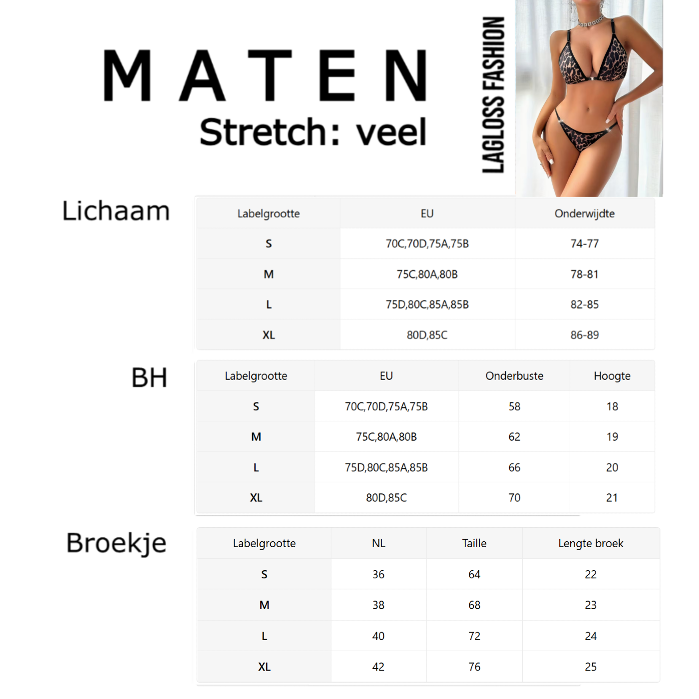Voel u stijlvol, zelfverzekerd en comfortabel met de trendy LaGloss luipaardprint BH-set. Deze modieuze lingerie set combineert een opvallende dierenprint met een elegant en comfortabel ontwerp. Dankzij het minimalistische model met driehoekige cups en stijlvolle bandjes is deze set perfect voor vrouwen die houden van een natuurlijke en vrouwelijke uitstraling.