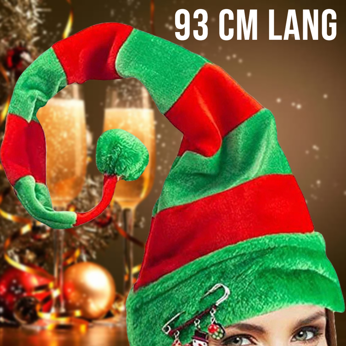- Opvallend Lang: Met zijn indrukwekkende lengte van 93 cm is deze kerstmuts een statement piece dat je niet vaak ziet.