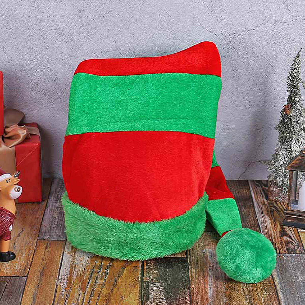 Luxe Rood Groene Kerstmuts 93 cm Lang - Fluweelzachte en Opvallende Kerstmuts Roodgroen