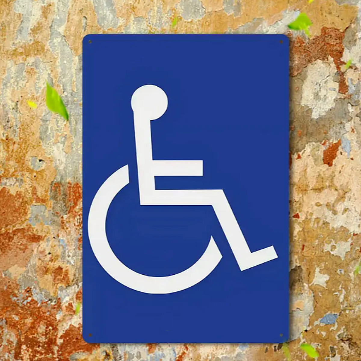 - Kleur: Blauw met wit rolstoelsymbool