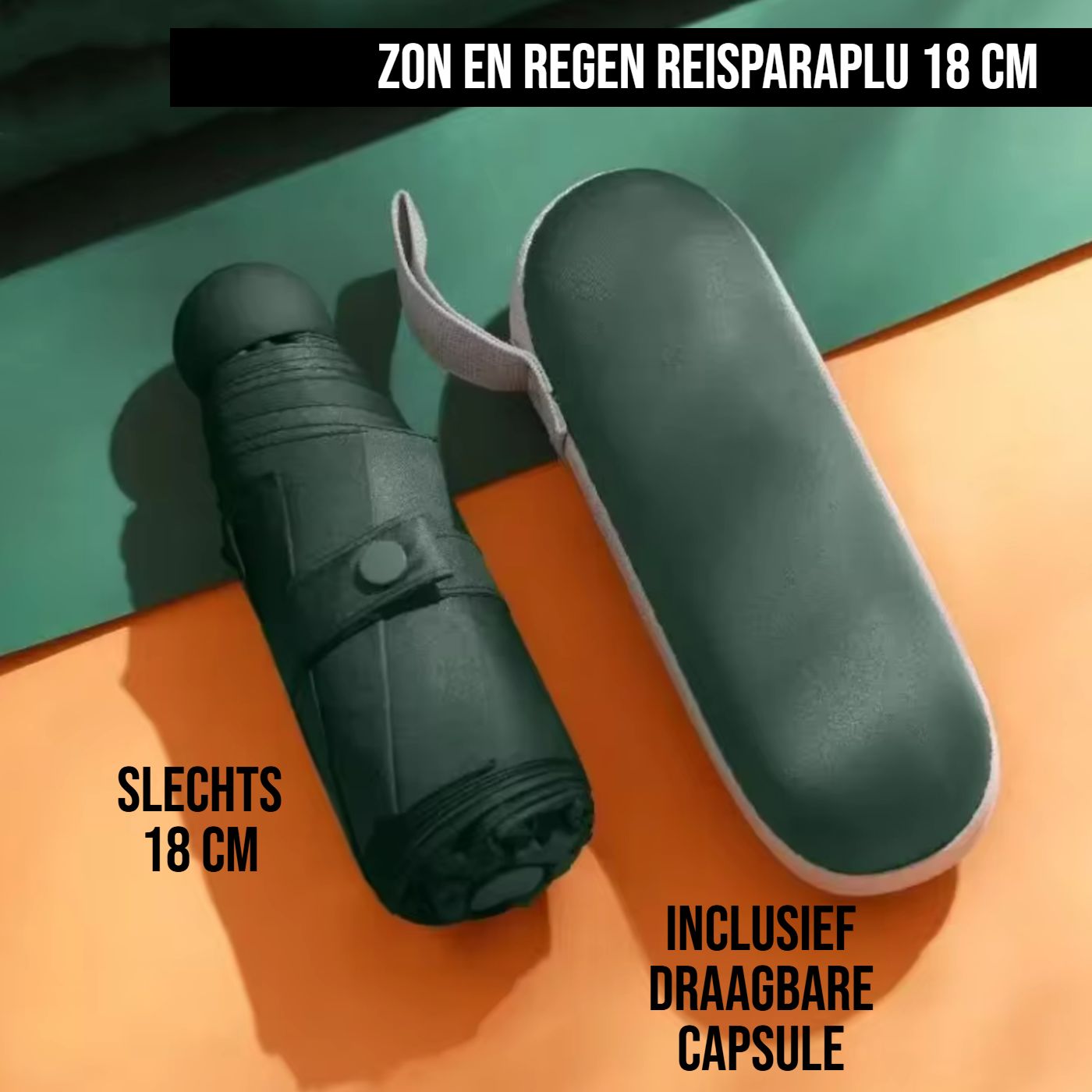 Compact & Draagbaar: Met een lengte van slechts 18 cm past deze paraplu perfect in je make-uptas, tas, aktetas, koffer of rugzak. Altijd handig om bij je te dragen! De capsule voorkomt dat andere spullen nat worden na gebruik.