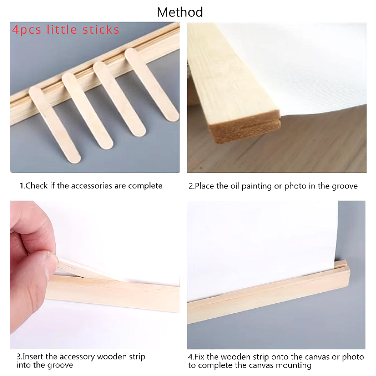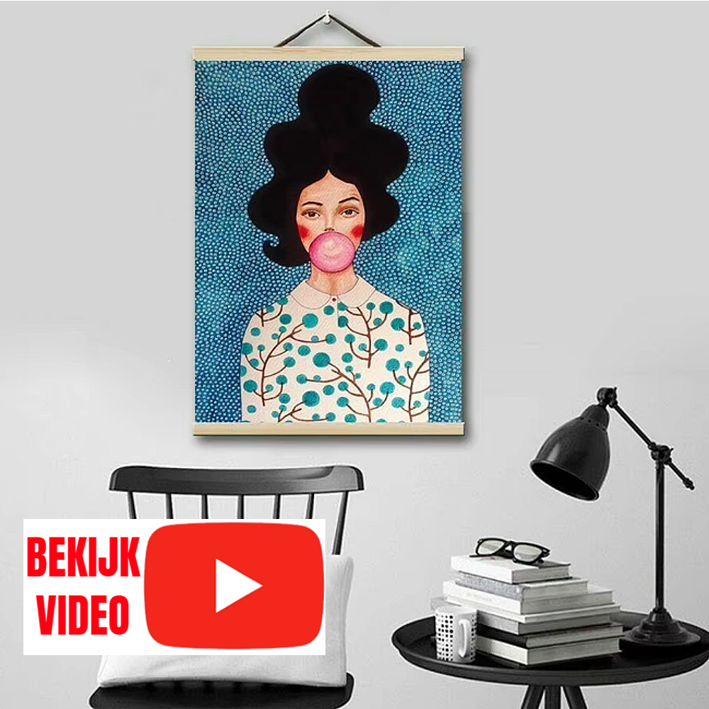 - Eenvoudige Bevestiging: Klem je poster tussen de stevige houten latjes, vastgezet met spatels aan de achterzijde. Geen lijm of tape, dus geen schade aan je poster!