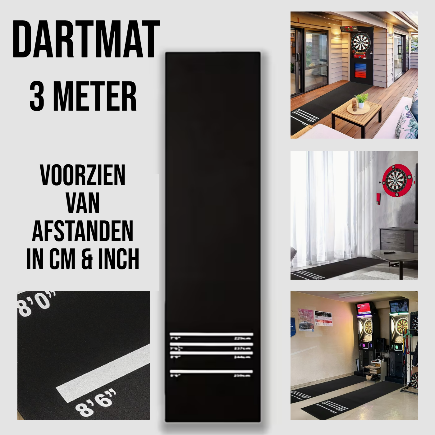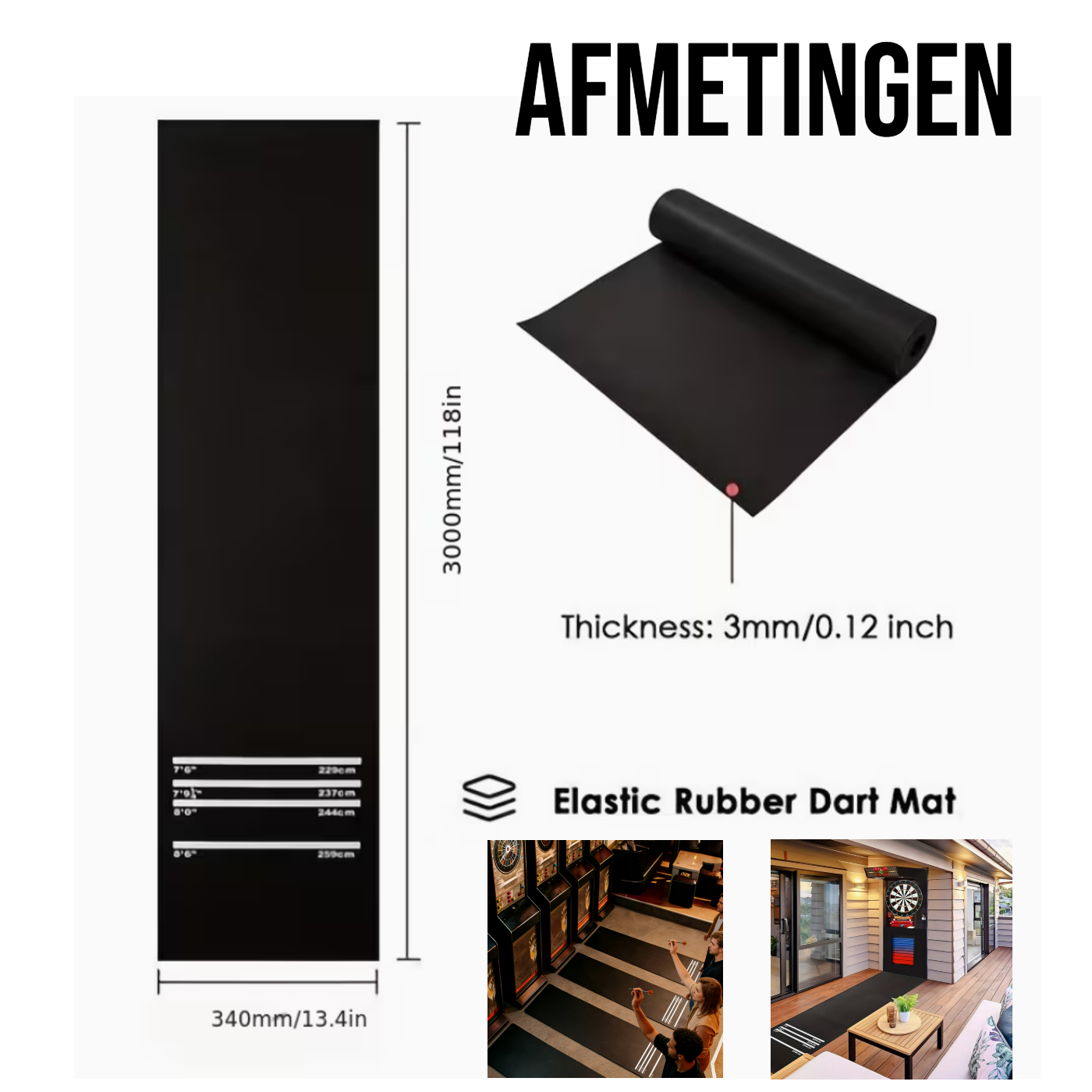 Professionele Dartmat 300x34 cm – EVA Beschermmat met 4 Werpafstanden voor Soft & Steel Tip