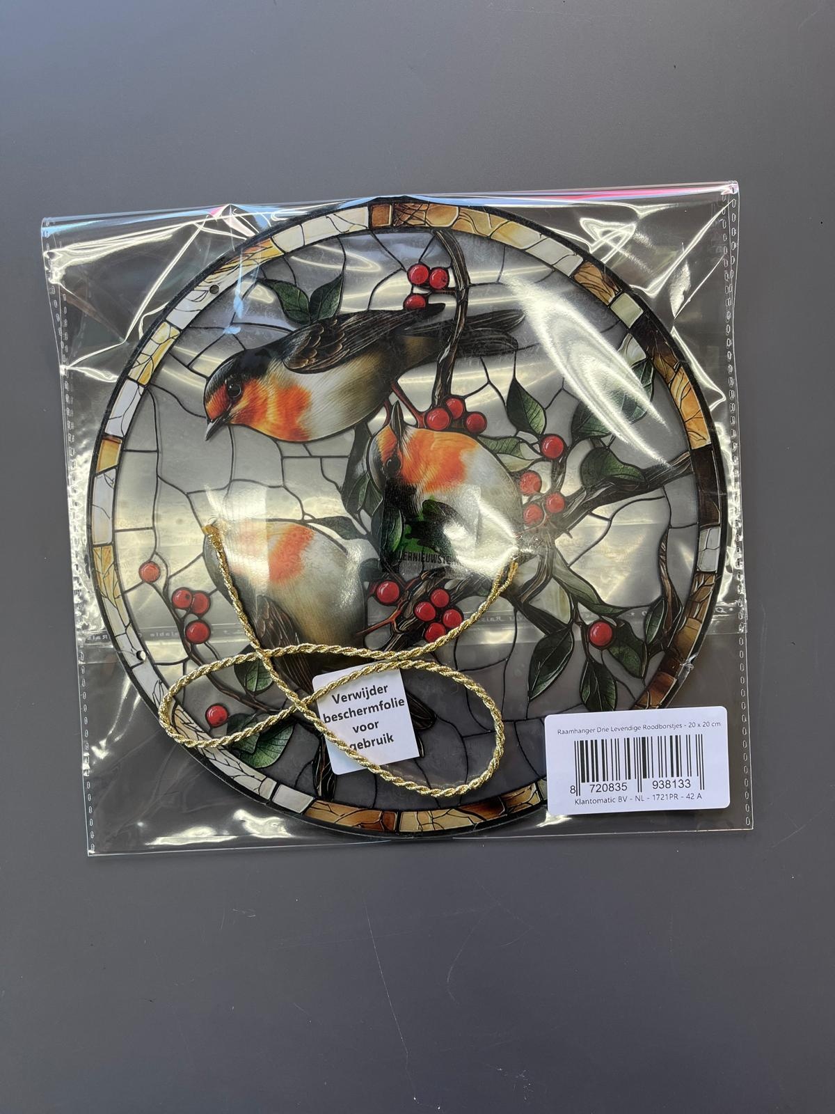 Allernieuwste.nl® Raamhanger Drie Levendige Roodborstjes – Perfect Cadeau - 20 x 20 cm
