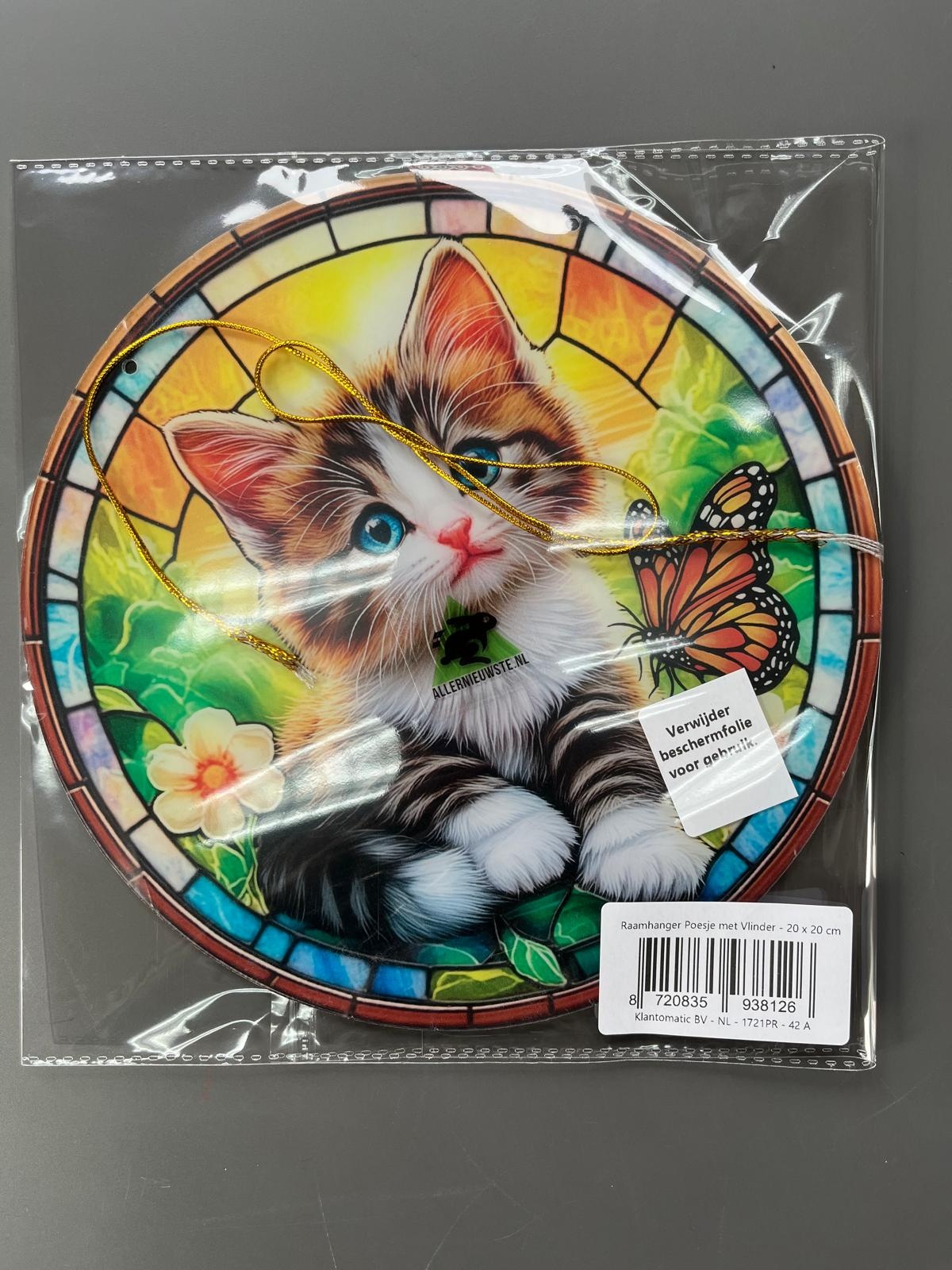 Allernieuwste.nl® Raamhanger Poesje met Vlinder – Perfect Cadeau - 20 x 20 cm